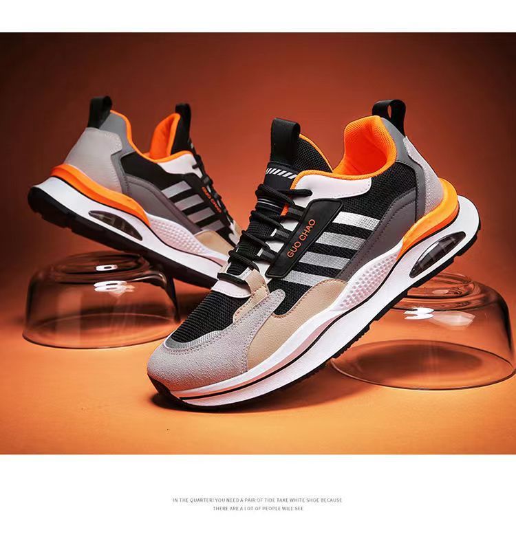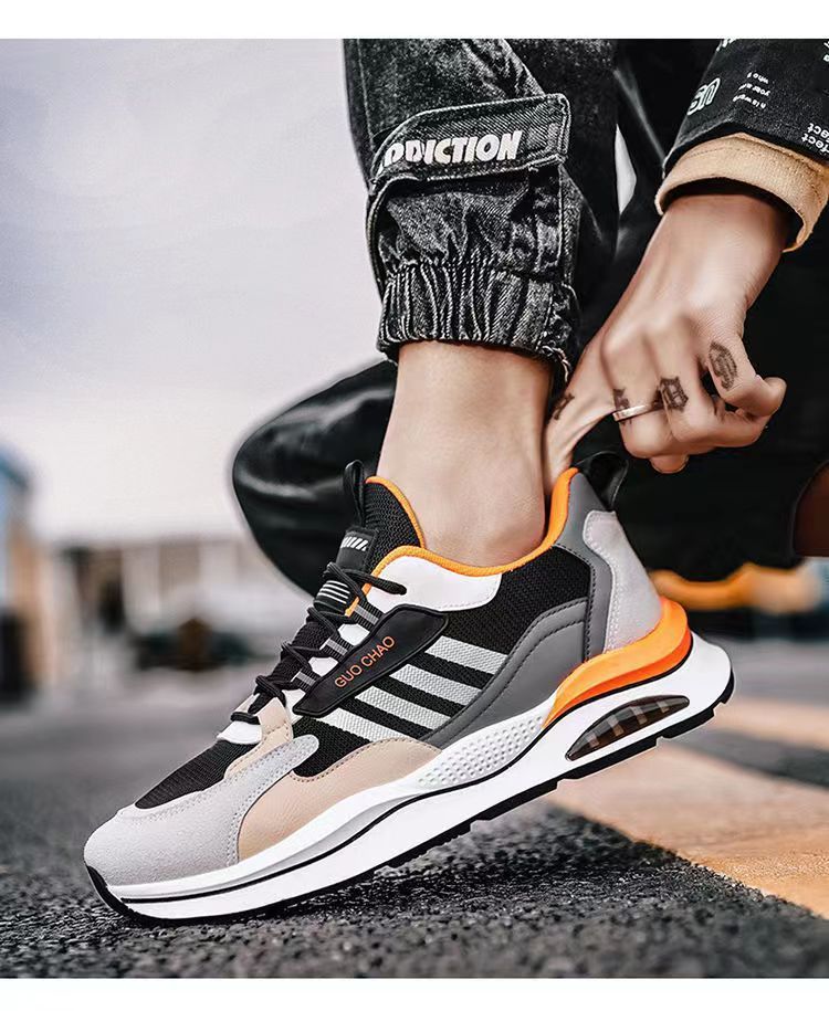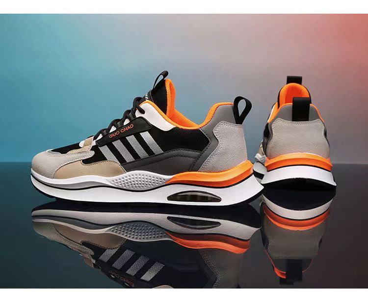 【皮革+網布】男士時尚休閒秋冬跑步鞋【灰橘色】一雙