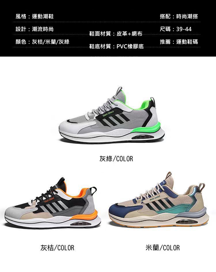 【皮革+網布】男士時尚休閒秋冬跑步鞋【灰橘色】+【灰綠色】各一雙(優惠400)