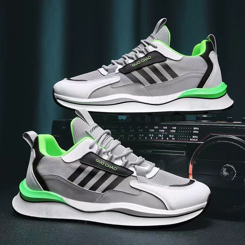 【皮革+網布】男士時尚休閒秋冬跑步鞋【灰綠色】一雙