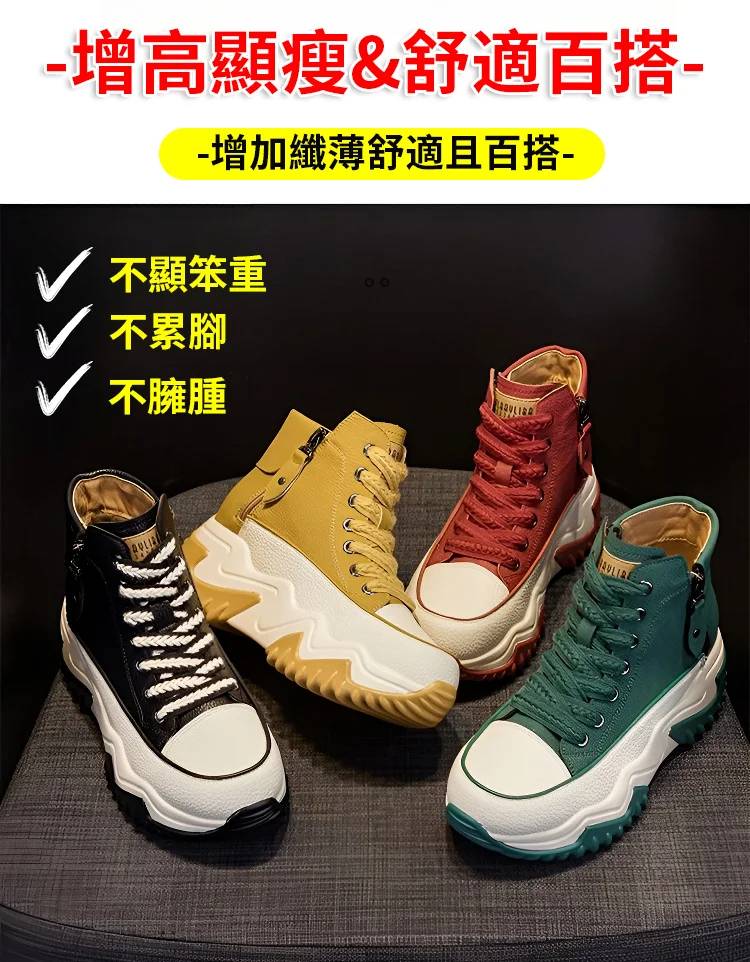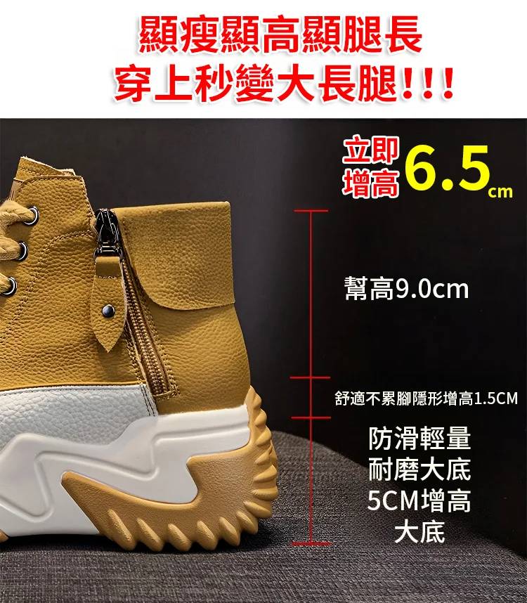 高幫百搭增高雙拉鏈女靴【限時買一送一】黃色+紅色各一雙(到手兩雙,每雙749元!)