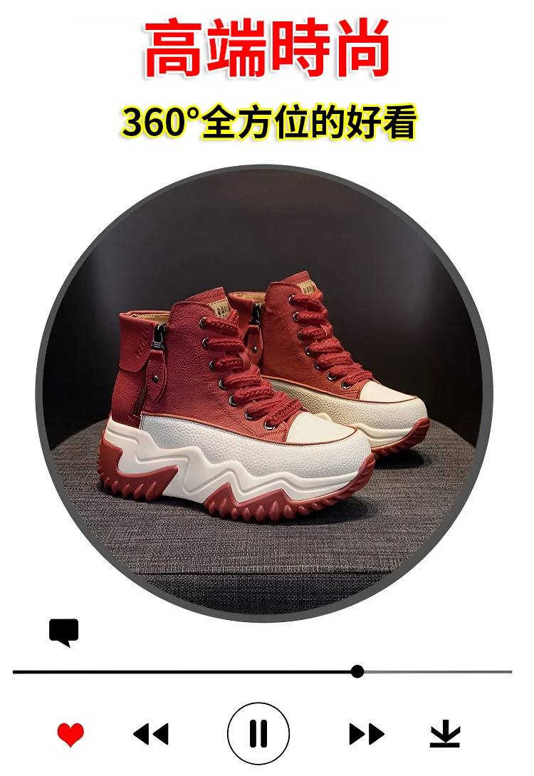 高幫百搭增高雙拉鏈女靴【紅色】一雙(到手一雙,貴在運費!)