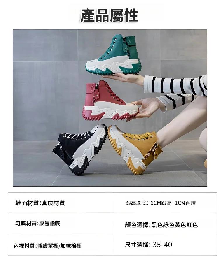 高幫百搭增高雙拉鏈女靴【限時買一送一】綠色+紅色各一雙(到手兩雙,每雙749元!)