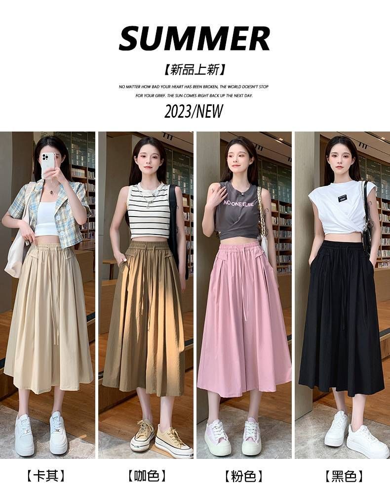 冰絲高腰裙褲【買一送一】【卡其色】+【粉色】各一條(每條499元)