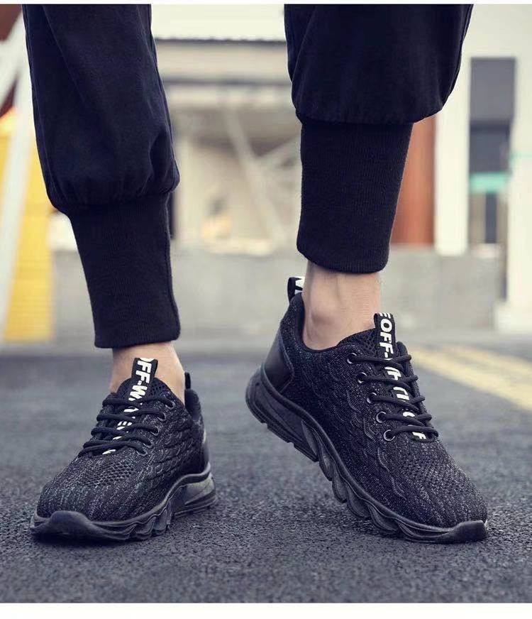 【輕質如翼!】男士飛織網面平底休閒運動鞋【黑色】一雙