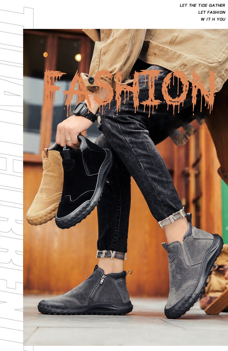 【“潮有範”】男士耐磨防滑一腳蹬工裝鞋【灰色】+【黑色】各一雙(優惠400)