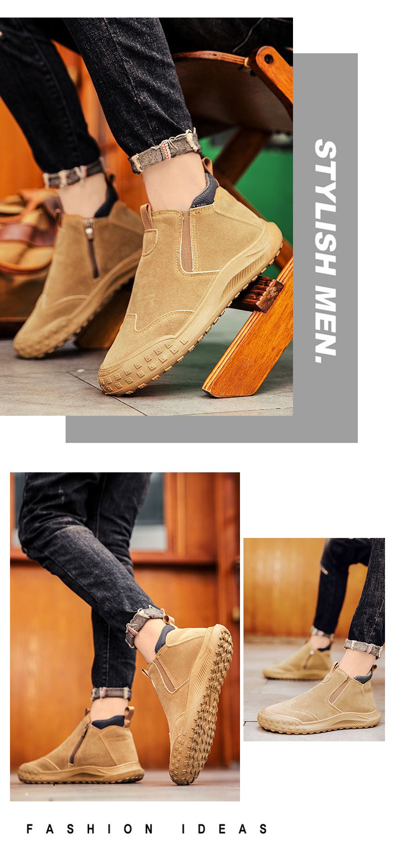 【“潮有範”】男士耐磨防滑一腳蹬工裝鞋【卡其色】+【灰色】各一雙(優惠400)