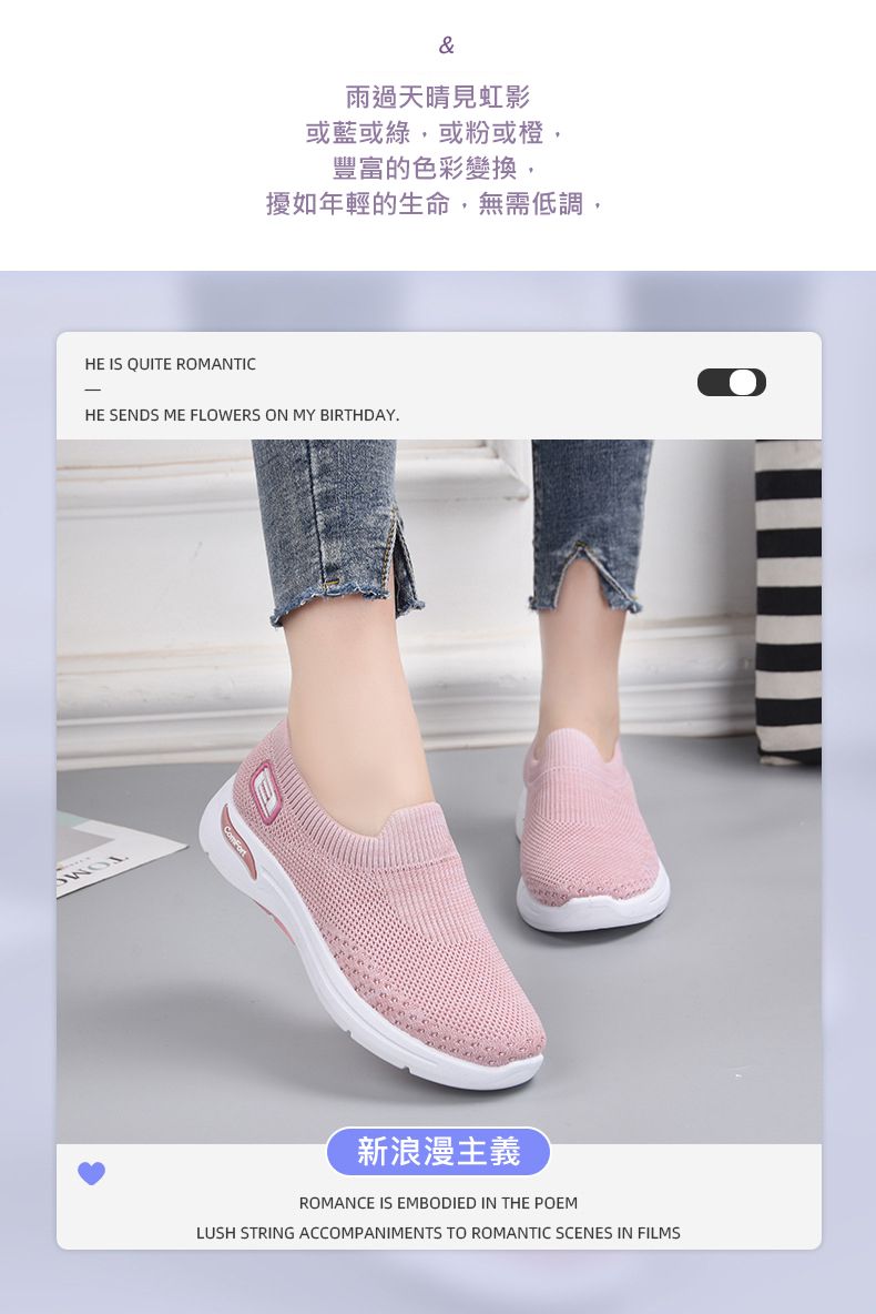 中老年透氣飛織休閒軟底女鞋【買一送一】粉色兩雙