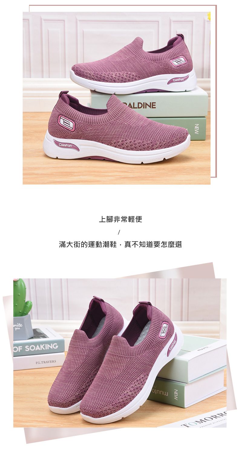 中老年透氣飛織休閒軟底女鞋【買一送一】紫色兩雙