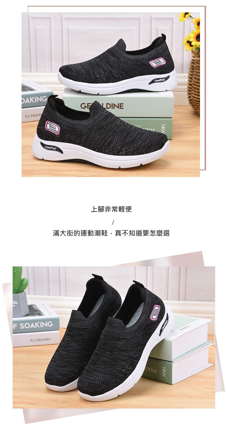 中老年透氣飛織休閒軟底女鞋【買一送一】黑色+粉色各一雙