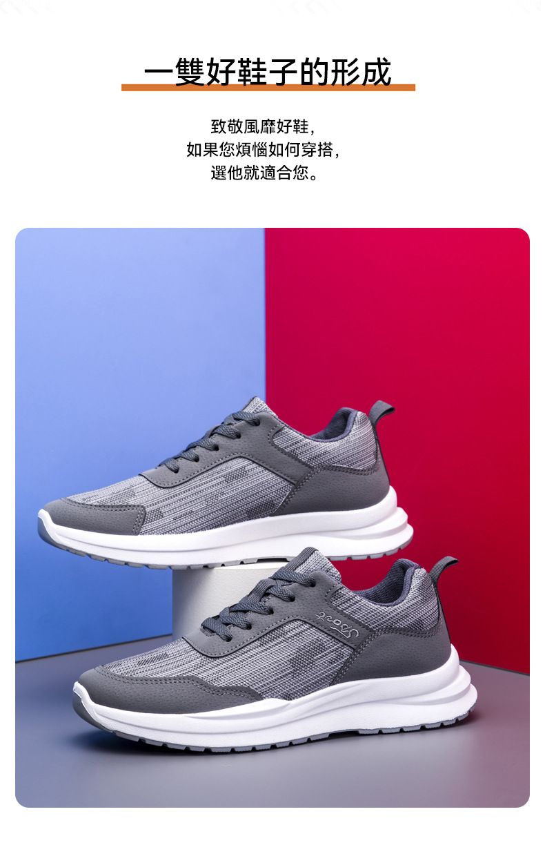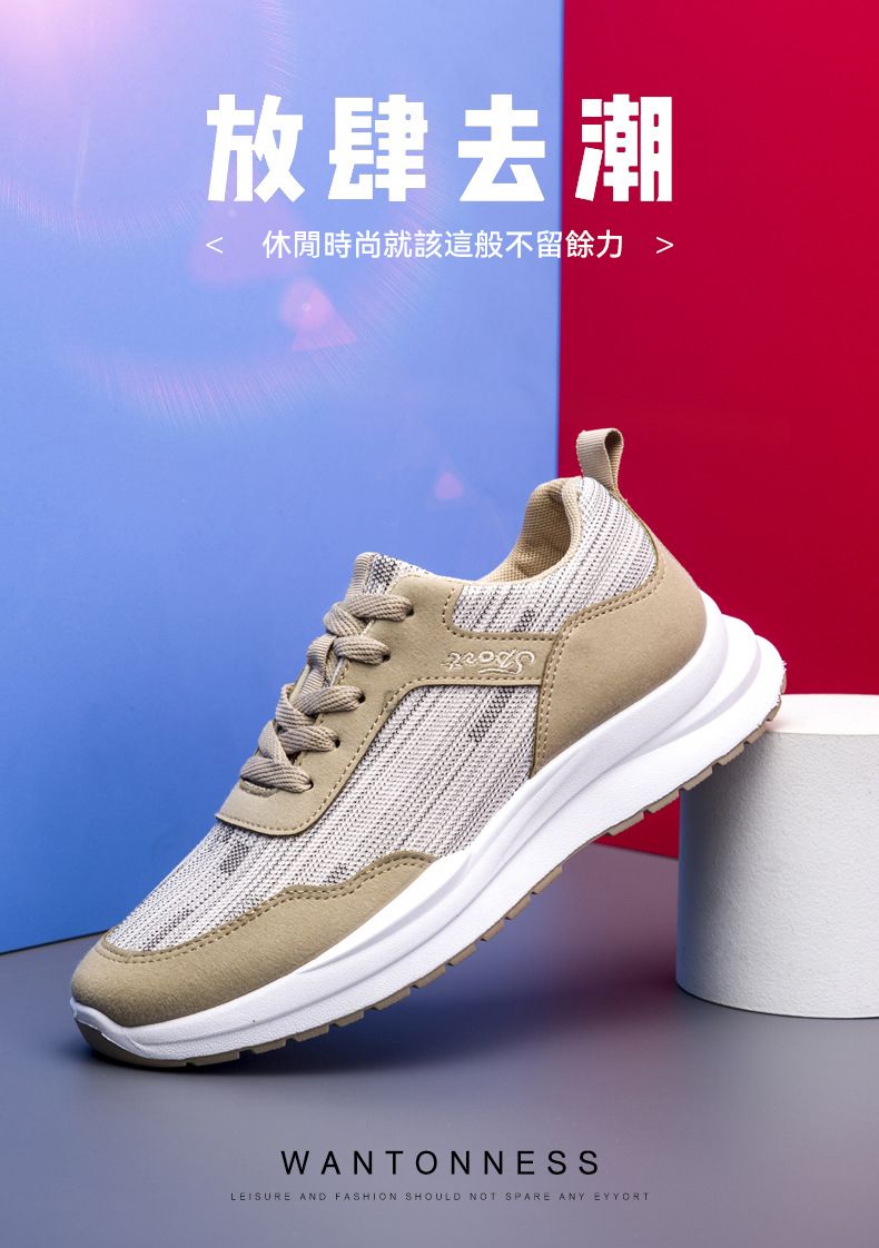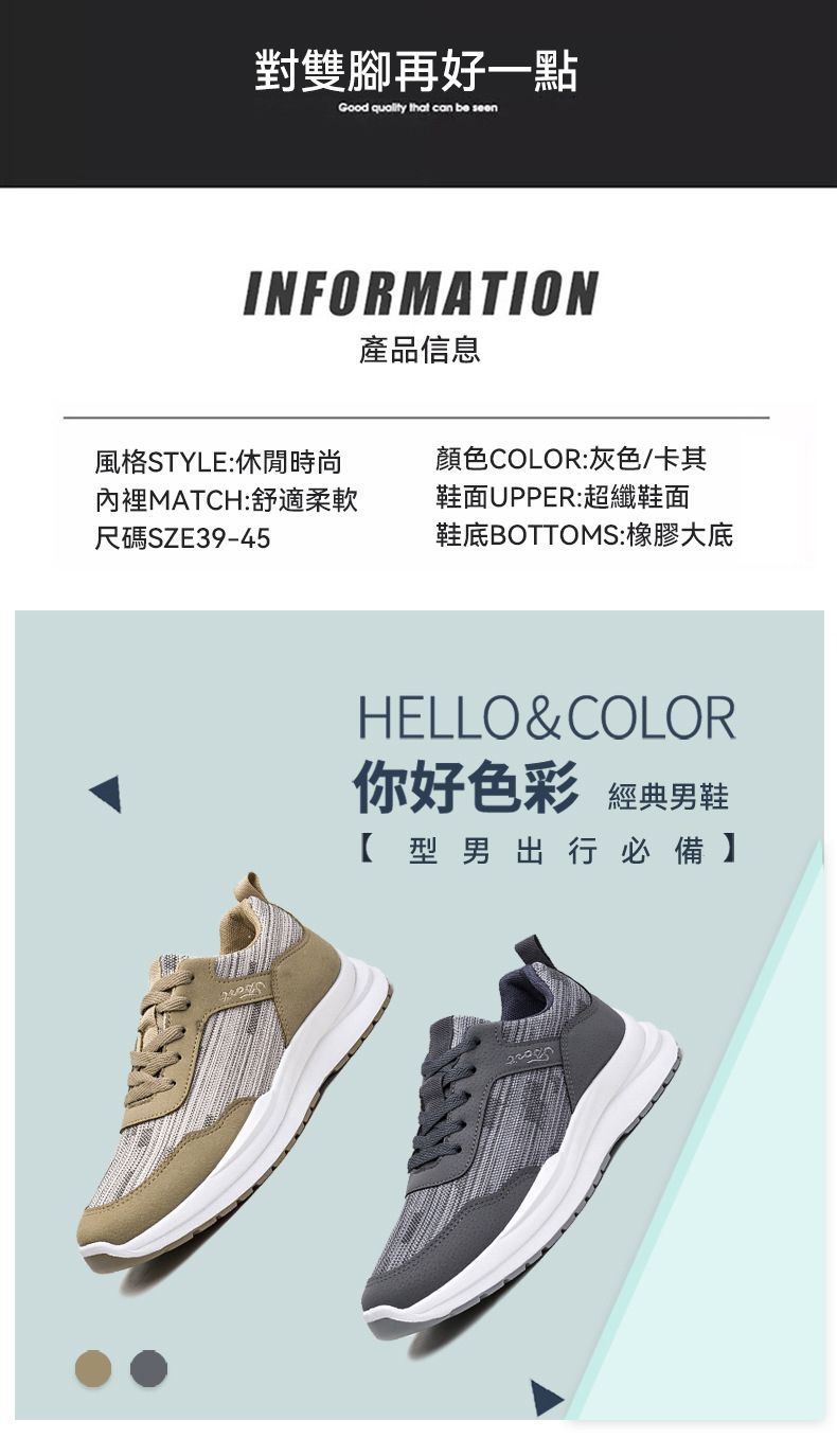 【超軟!透氣!耐穿!】新款男士韓版時尚運動鞋【卡其色】+【灰色】各一雙(優惠400)