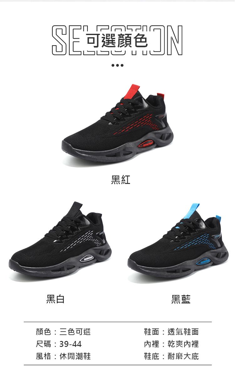 【隨風而行,輕快爽跑】男士飛織鞋面輕盈柔軟運動鞋【黑白色】+【黑紅色】各一雙(優惠400)