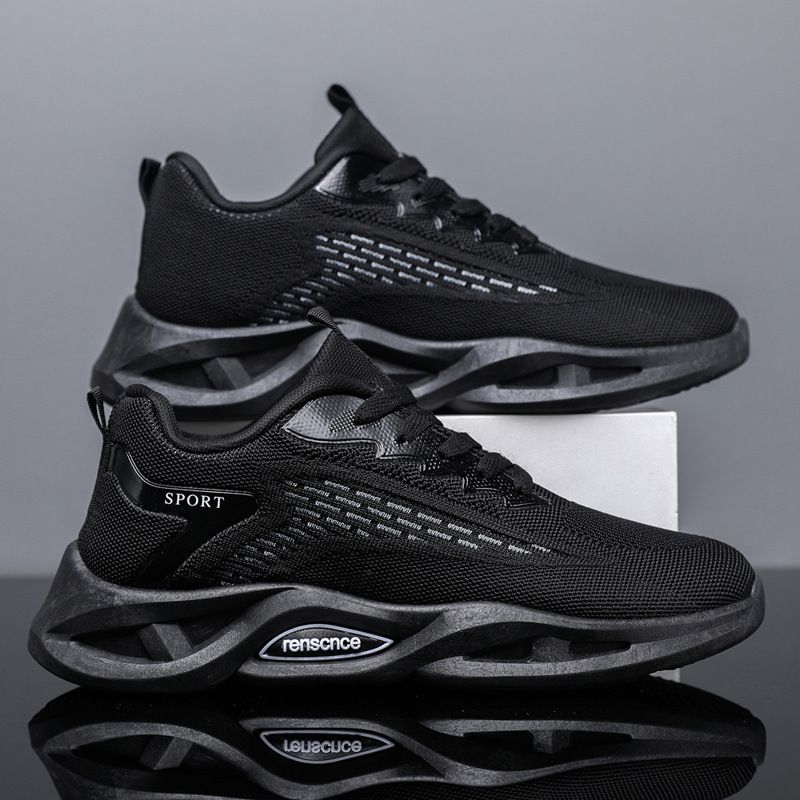 【隨風而行,輕快爽跑】男士飛織鞋面輕盈柔軟運動鞋【黑白色】一雙