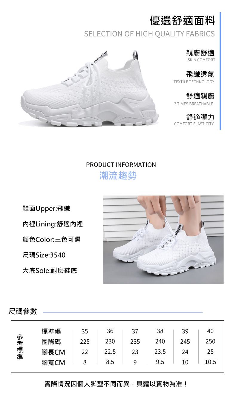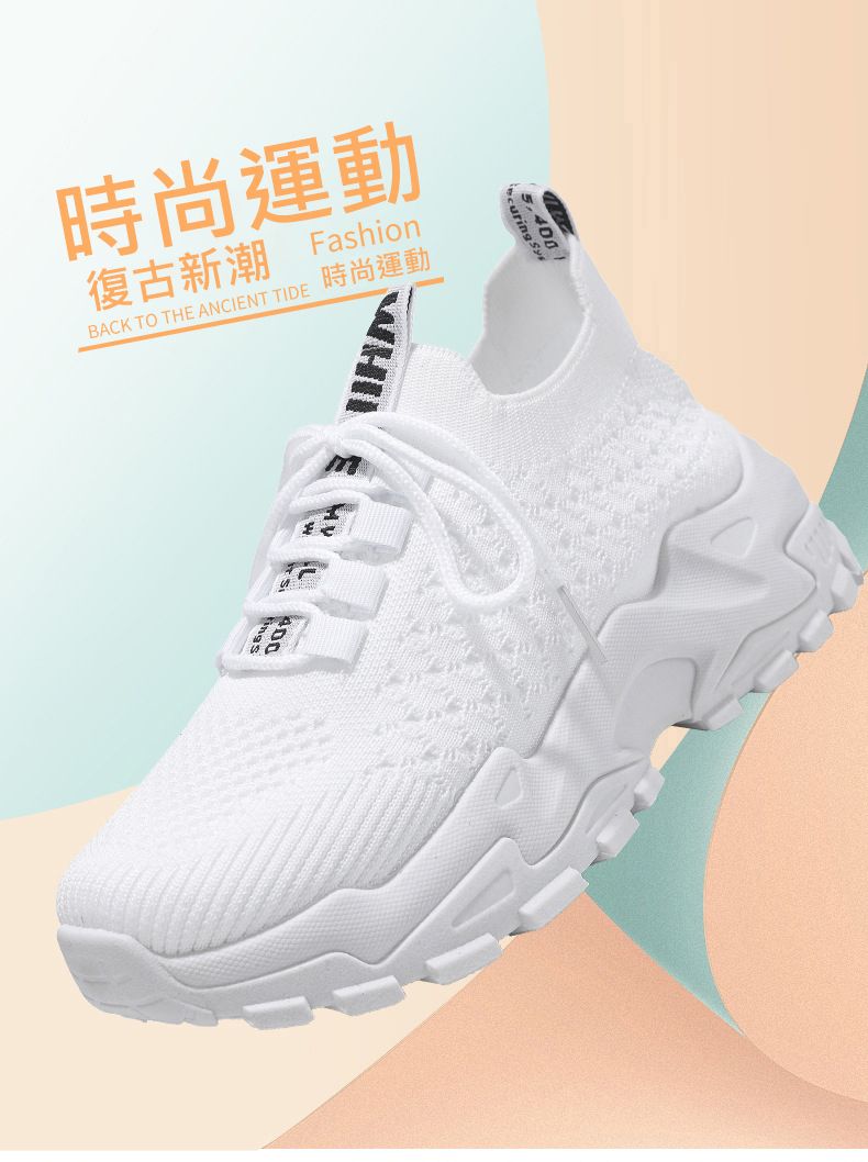 女士青春潮流時尚運動厚底運動鞋【買一送一】【白色】兩雙