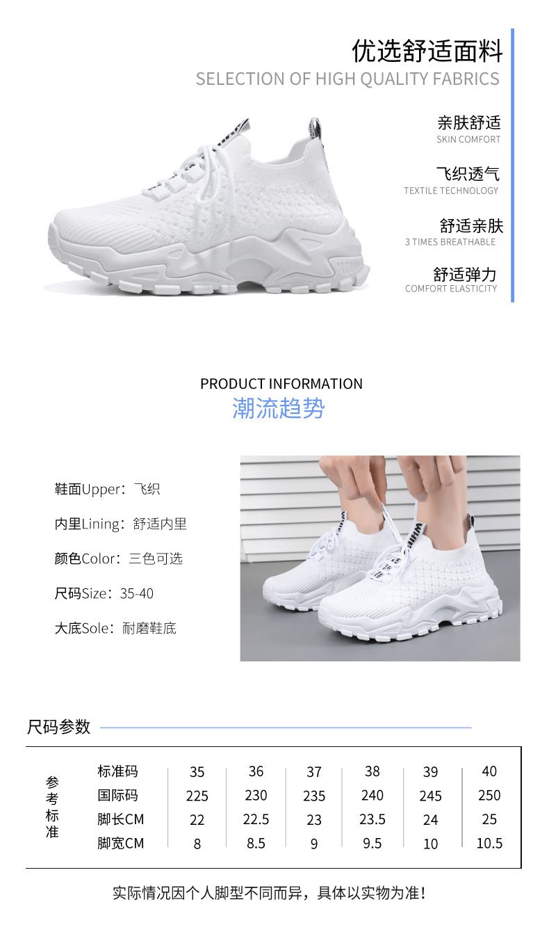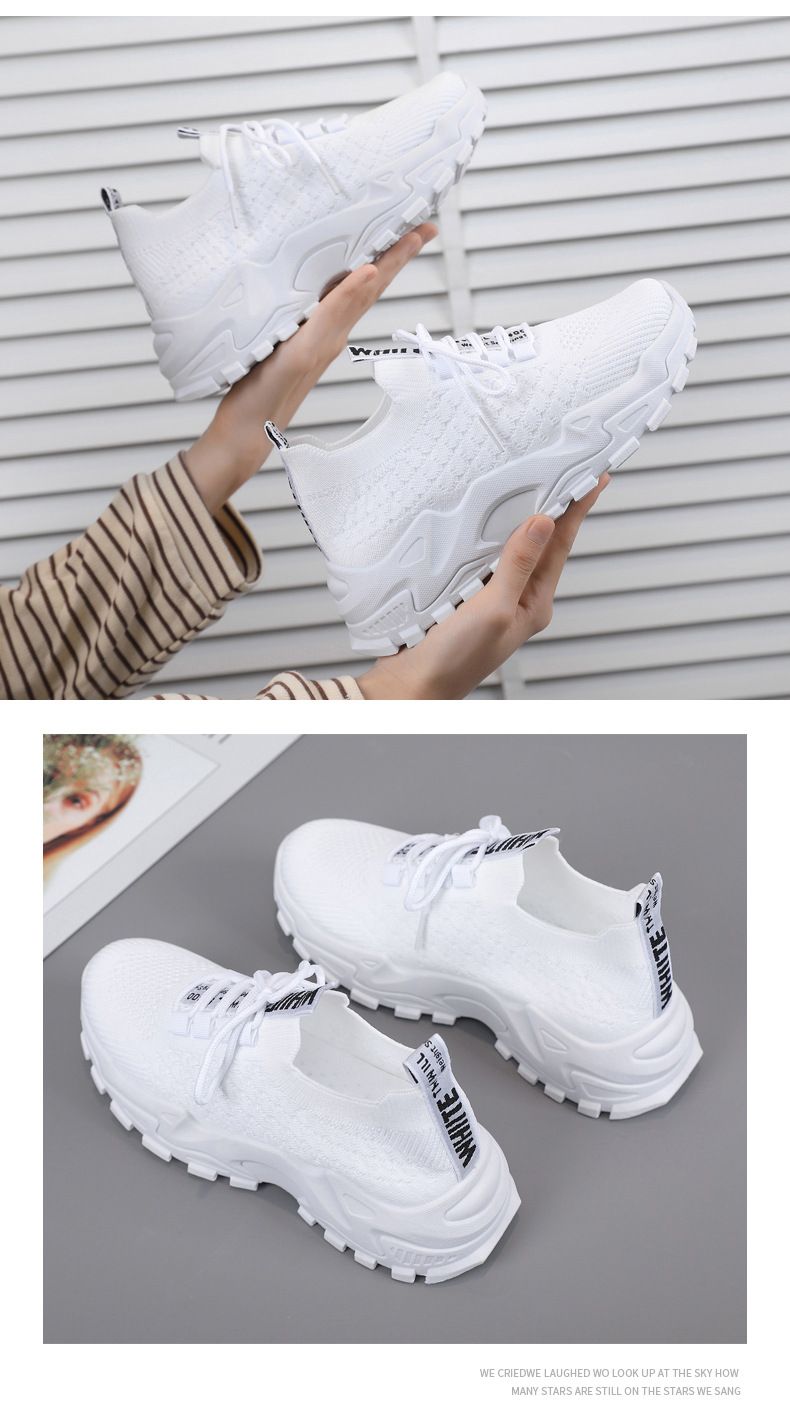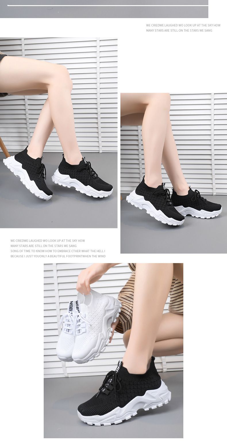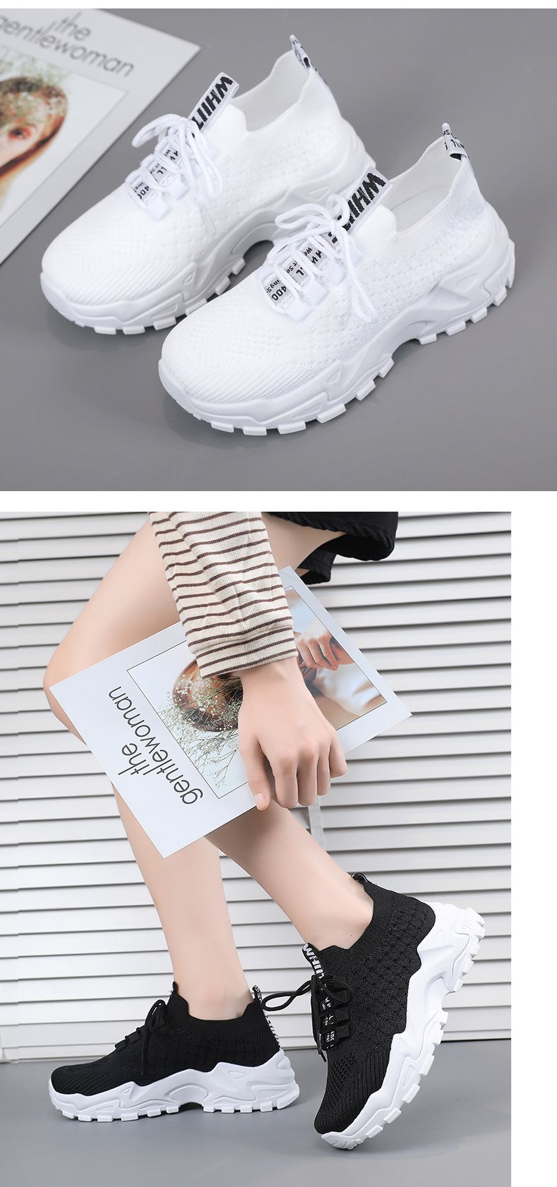 女士青春潮流時尚運動厚底運動鞋【買一送一】【白色】+【黑色】各一雙