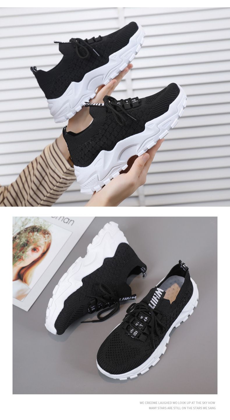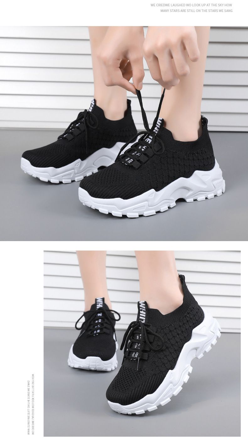 女士青春潮流時尚運動厚底運動鞋【買一送一】【黑色】兩雙