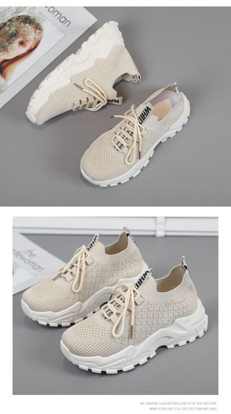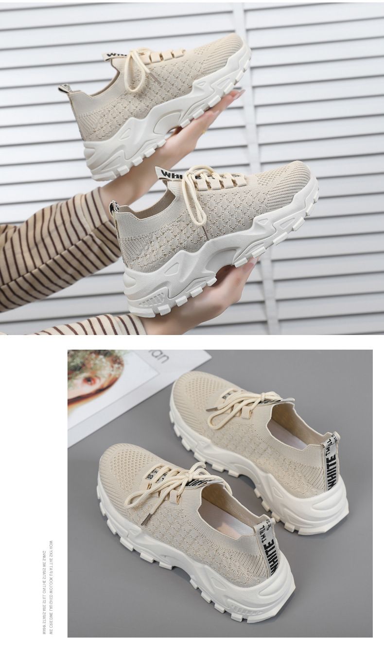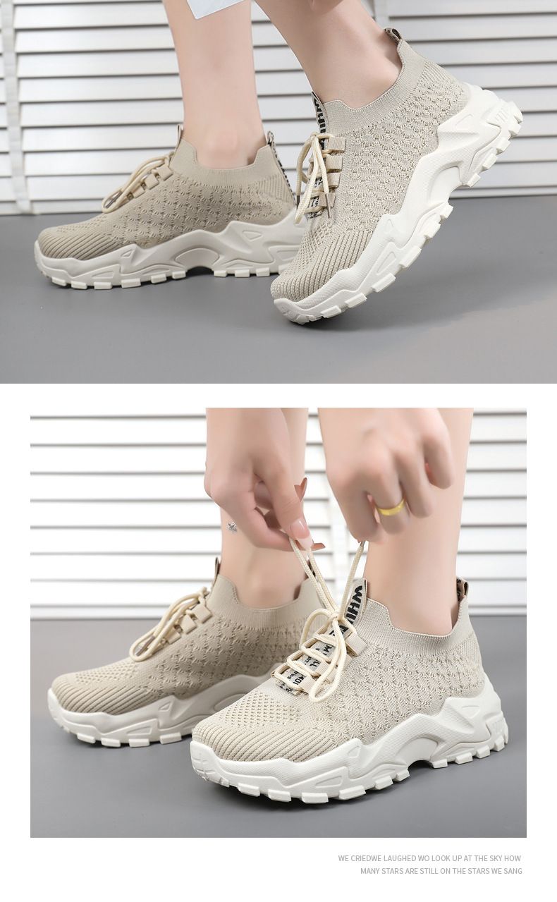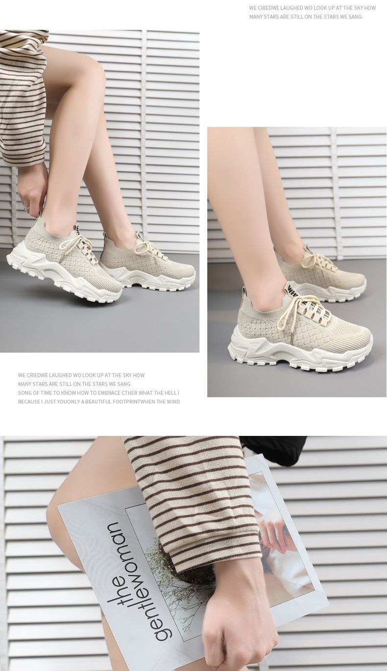 女士青春潮流時尚運動厚底運動鞋【買一送一】【卡其色】兩雙