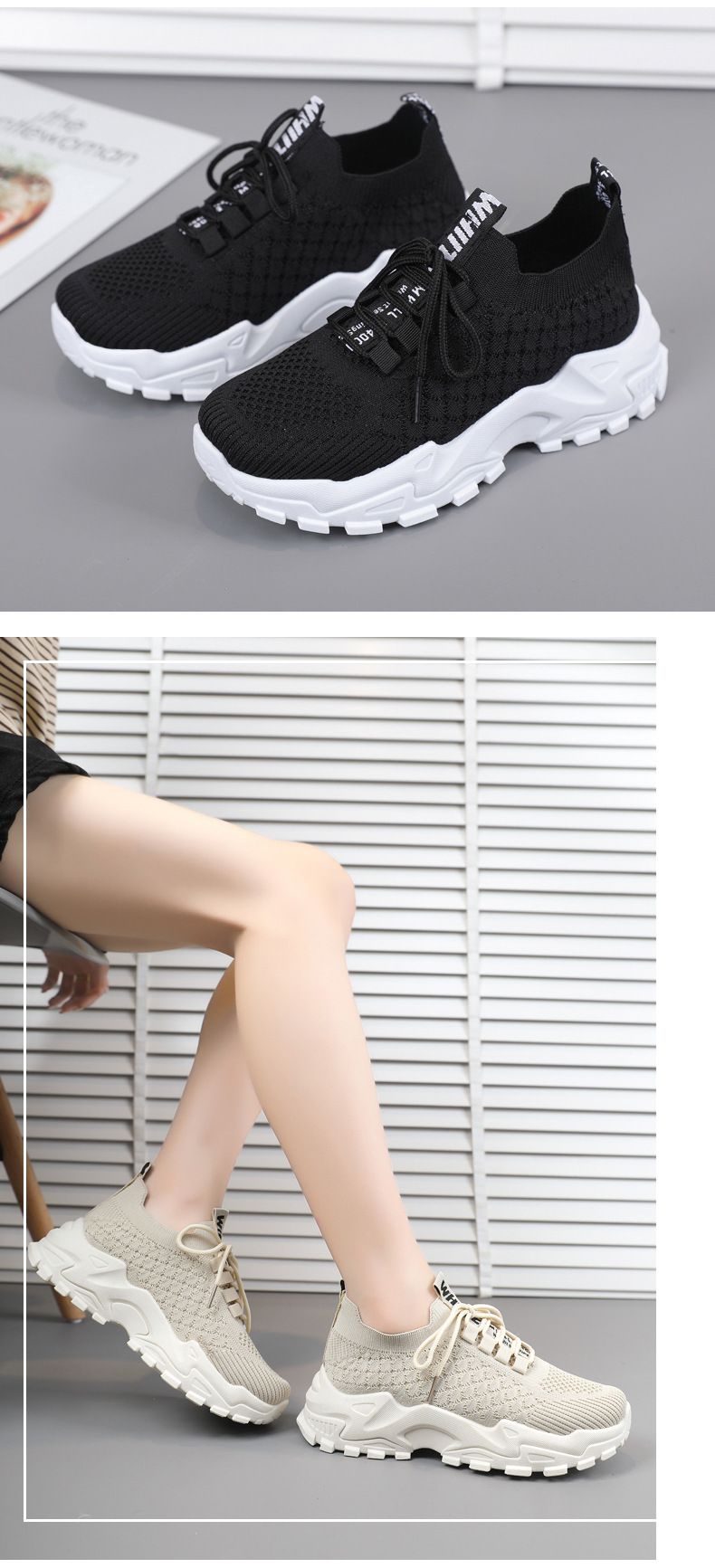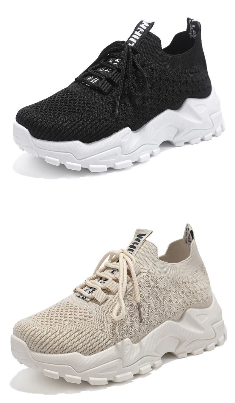 女士青春潮流時尚運動厚底運動鞋【買一送一】【卡其色】+【黑色】各一雙