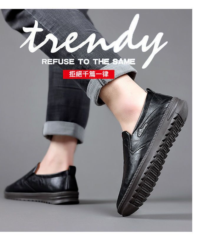男士商務休閒駕車防滑軟底純牛皮鞋【買一送一】【黑色】+【白色】各一雙