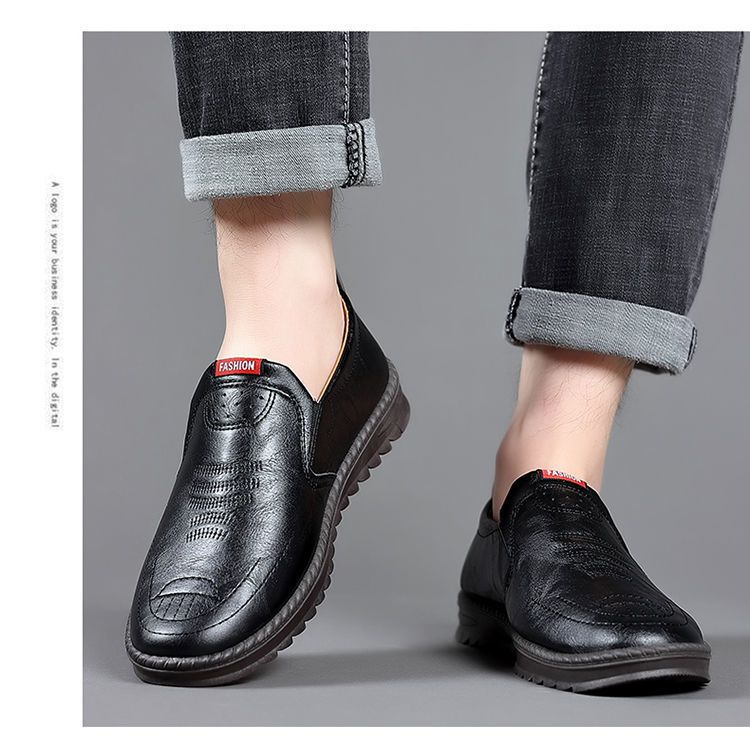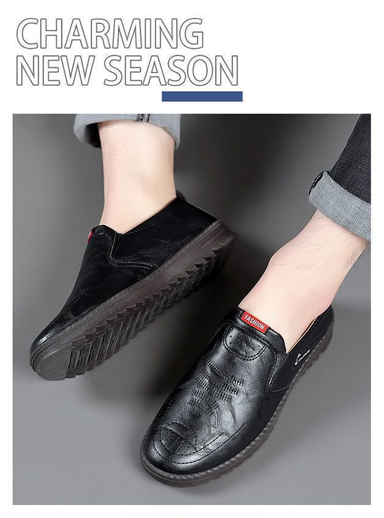男士商務休閒駕車防滑軟底純牛皮鞋【買一送一】【黑色】兩雙
