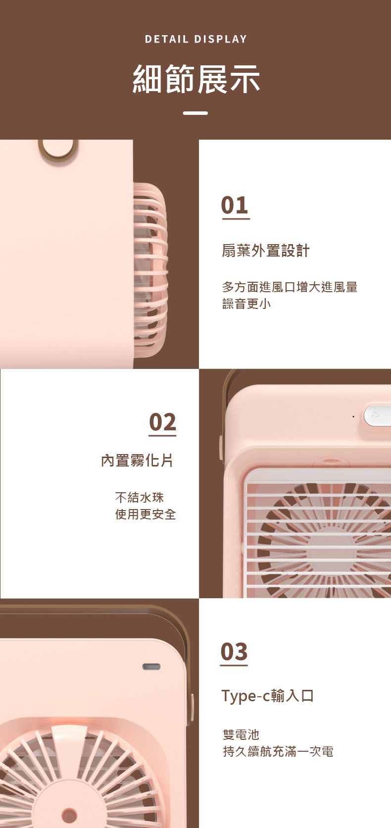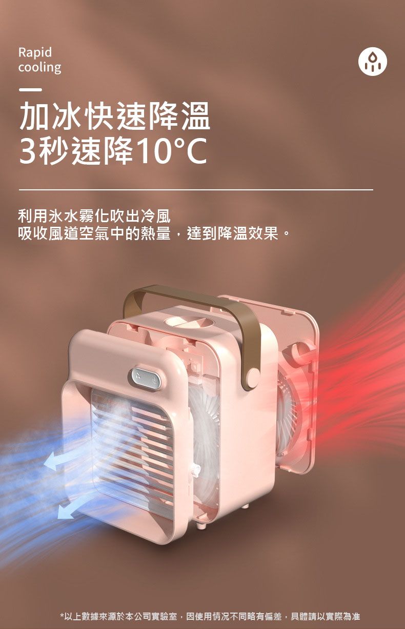 三檔靜音噴霧加濕冷風機【粉色充電款】一組