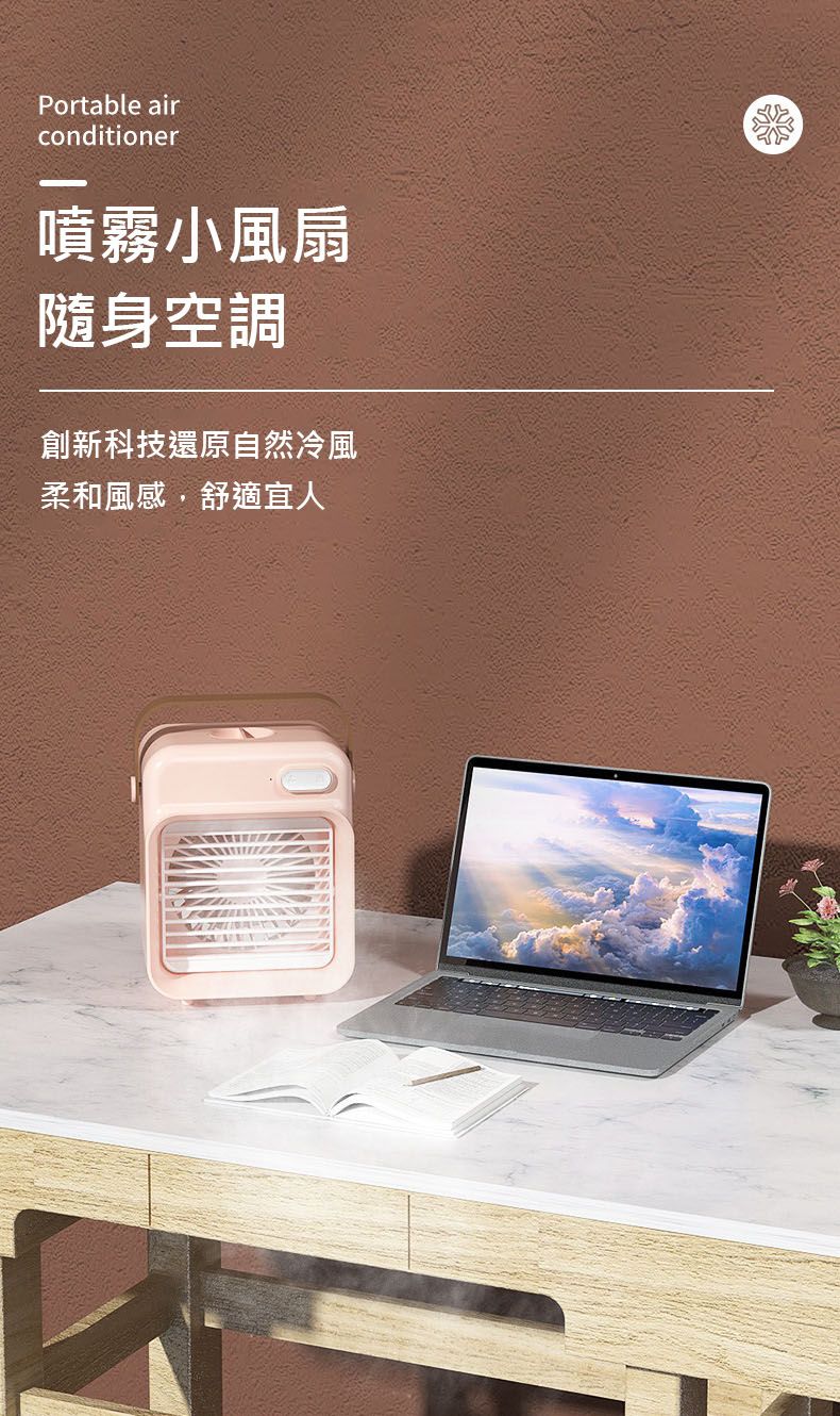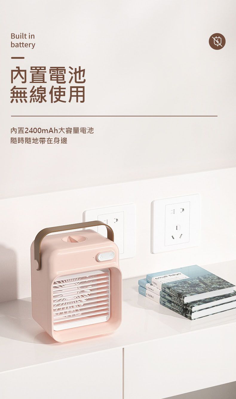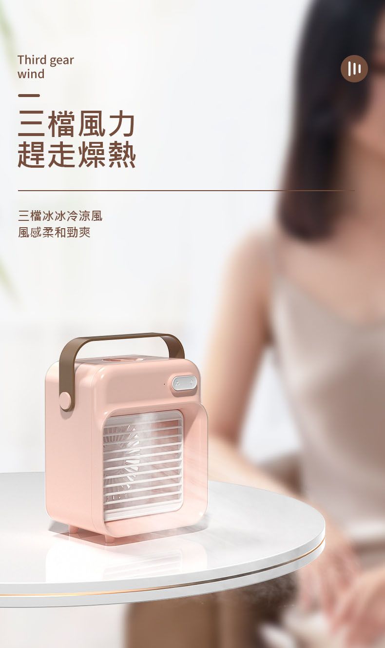 三檔靜音噴霧加濕冷風機【白色充電款】+【粉色充電款】各一組(優惠400)