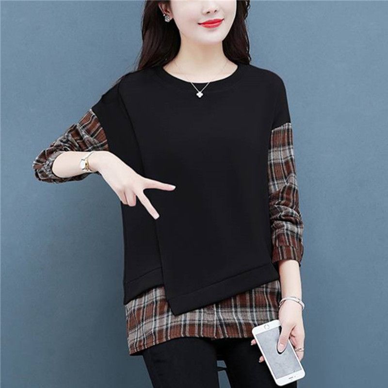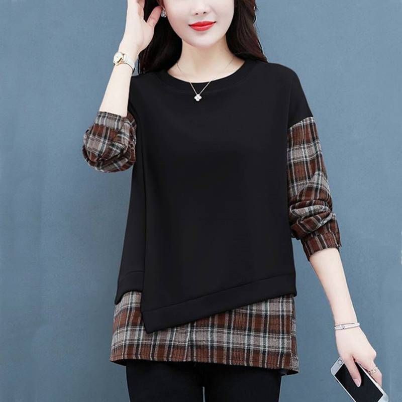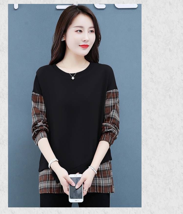 格子拼接純棉假兩件套【秒殺4件!】黑色+咖色各兩件(到手四件,每件399元!)