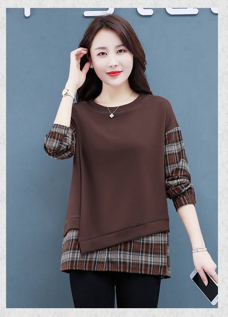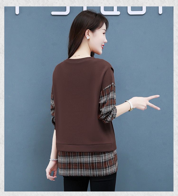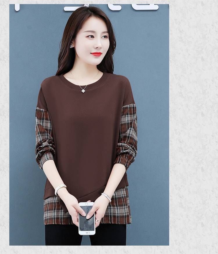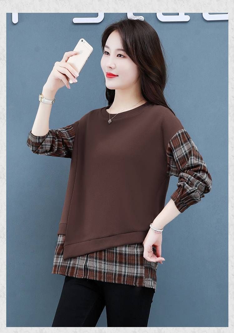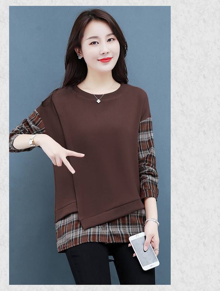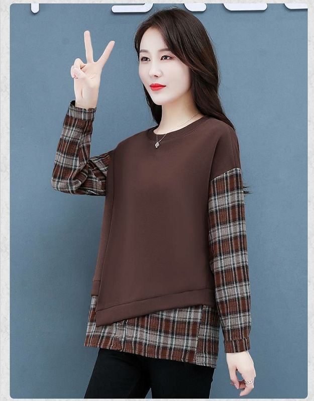 格子拼接純棉假兩件套【買一送一】咖色兩件(到手兩件,每件499元!)