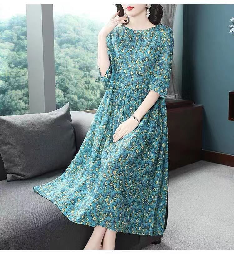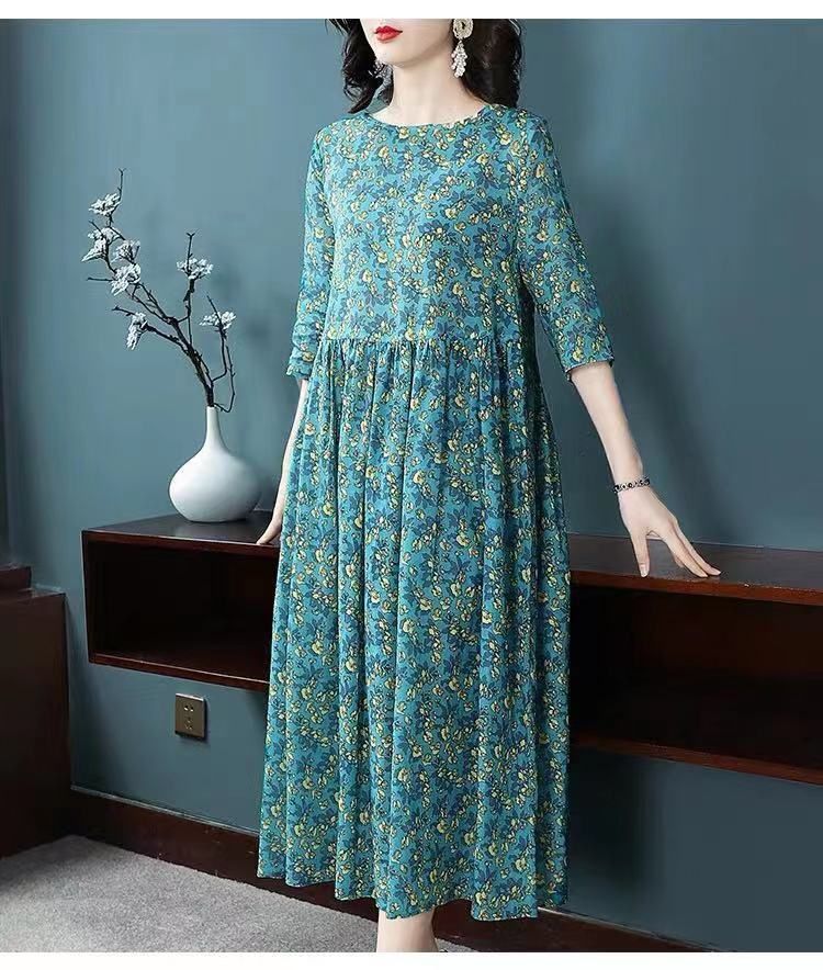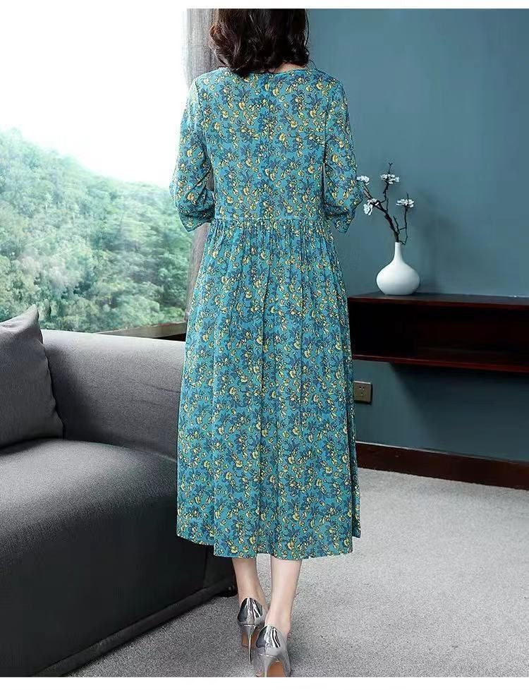 【感恩回饋!新品限時限量超級甜甜價!】中年媽媽中長款碎花連衣裙