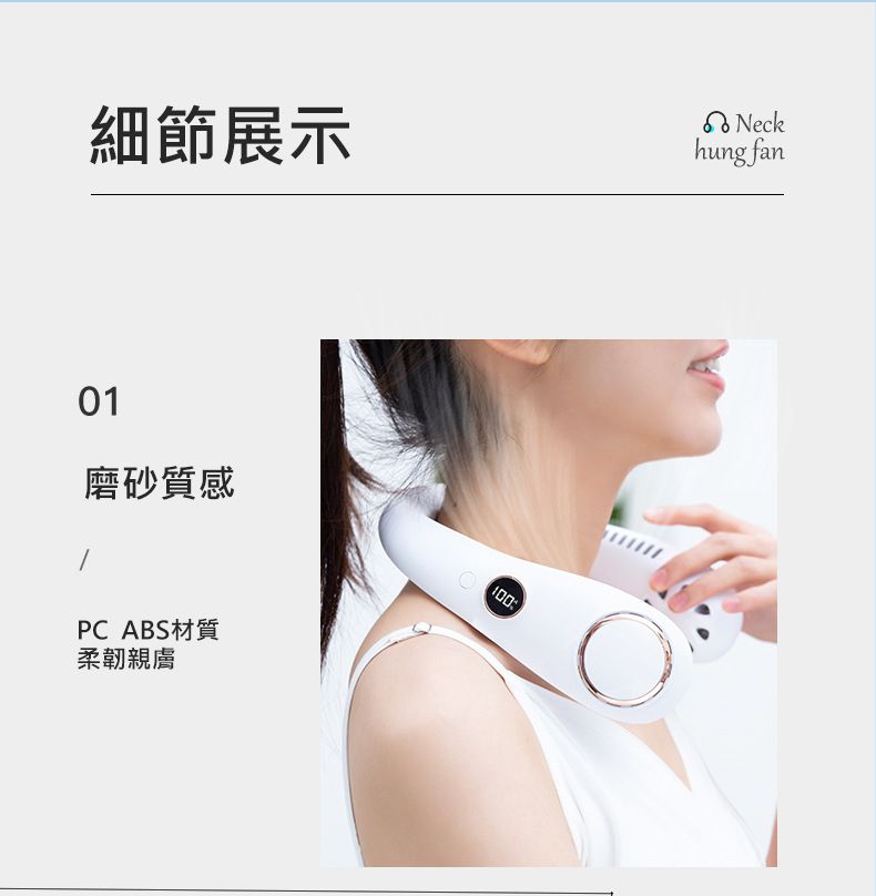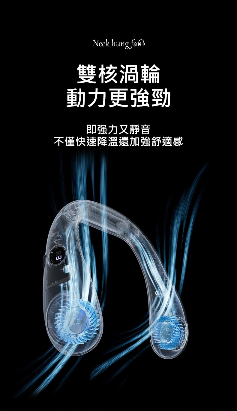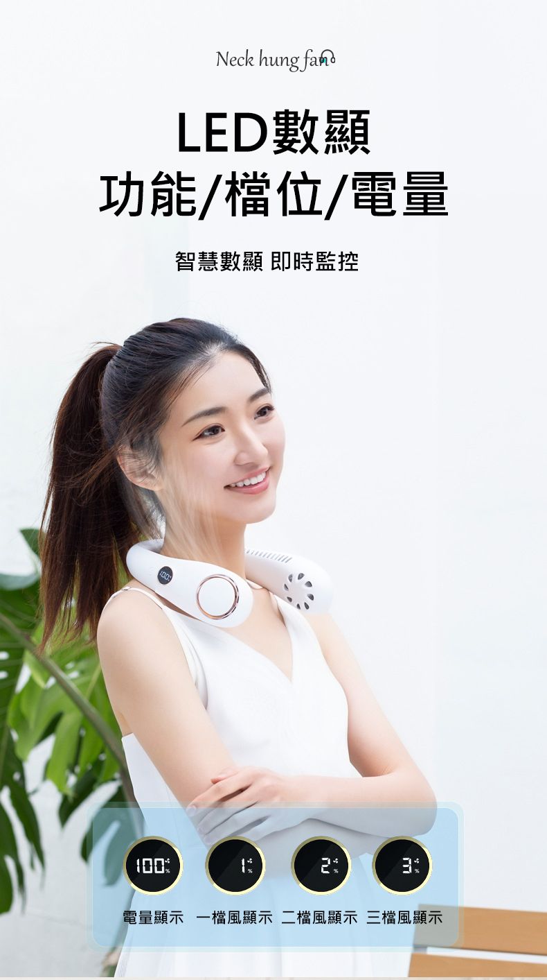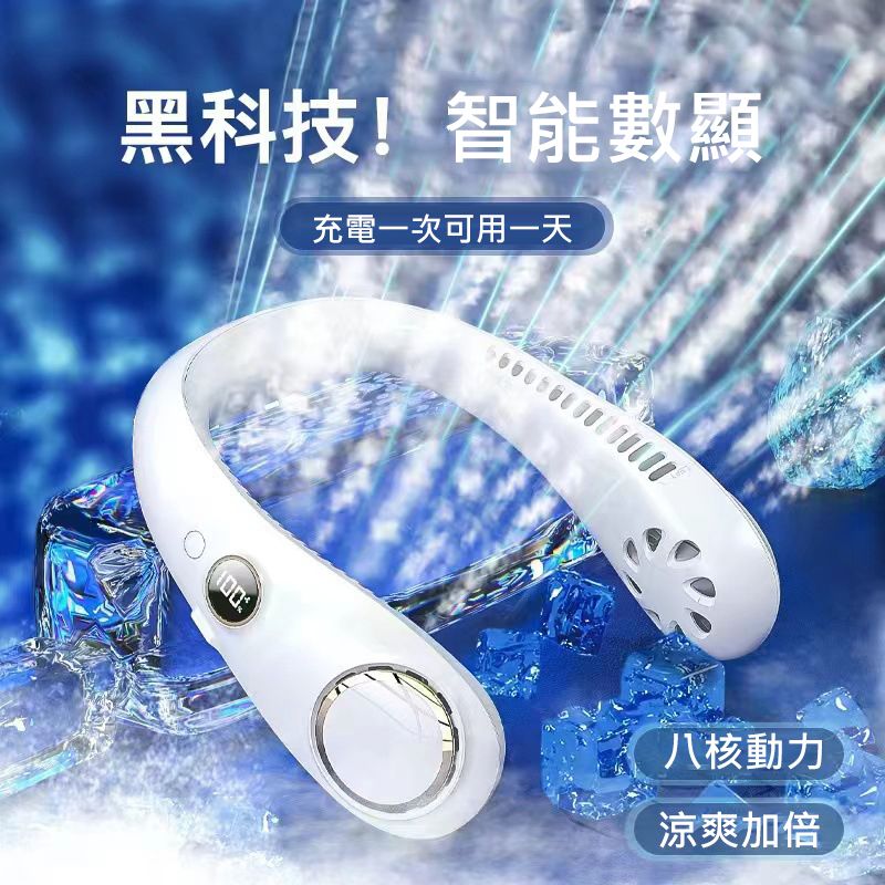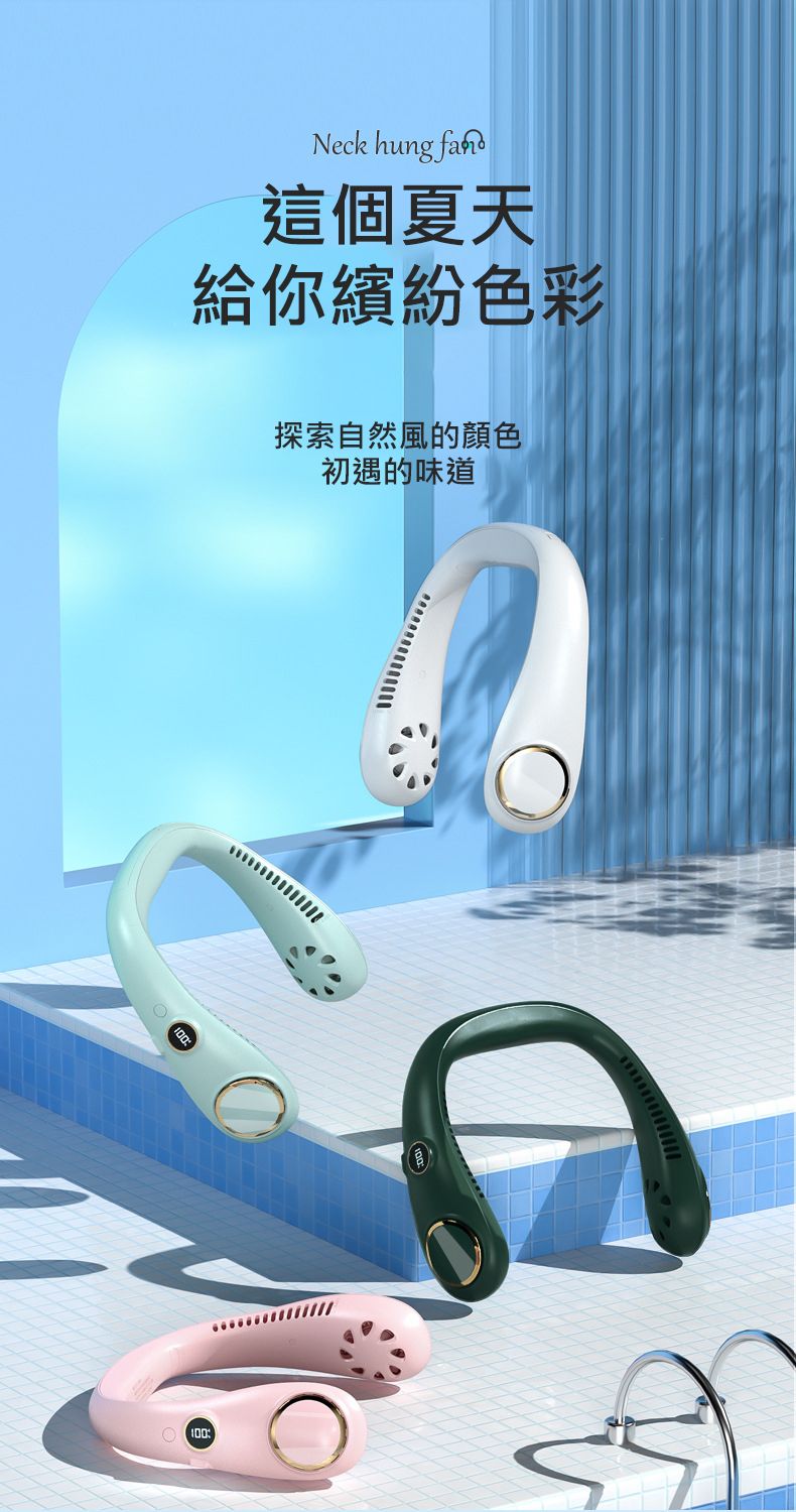 新款usb便攜數顯無葉掛脖風扇【冰川白】+【暗夜綠】各一組(優惠400)