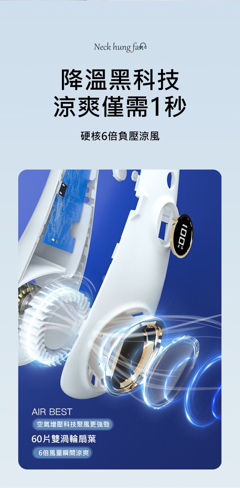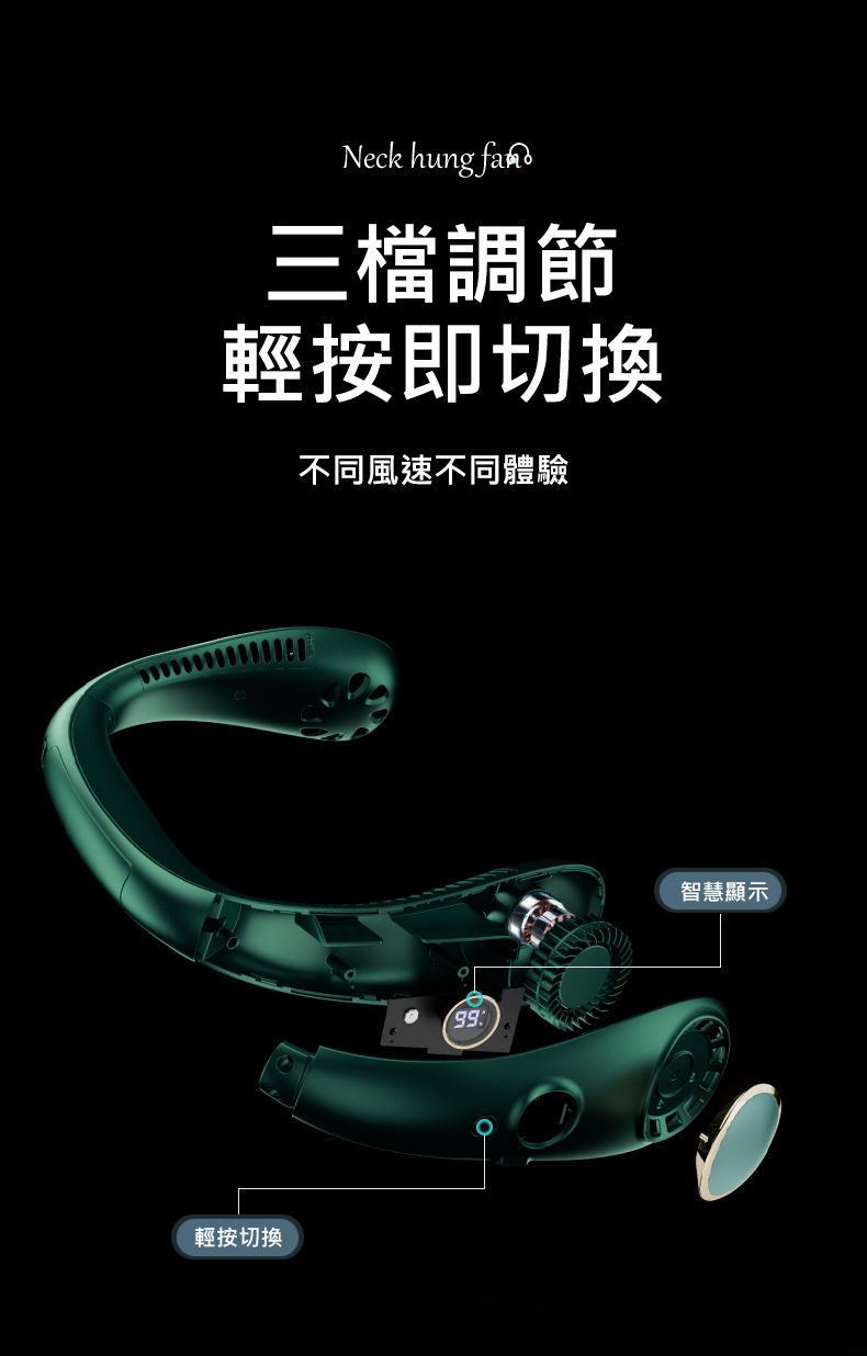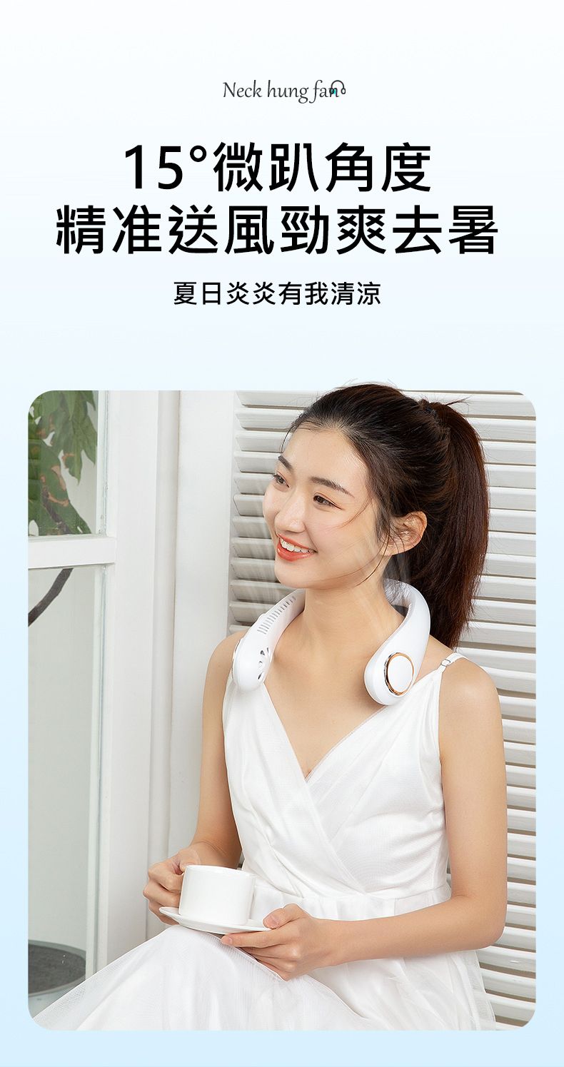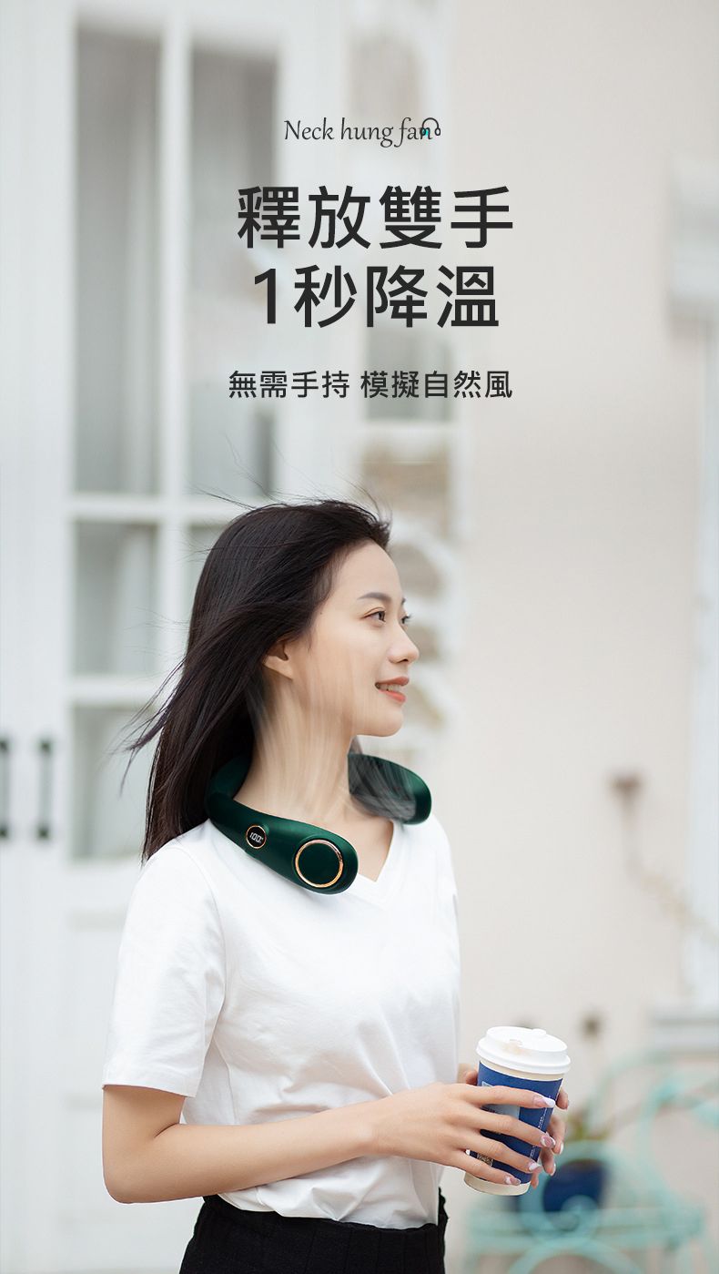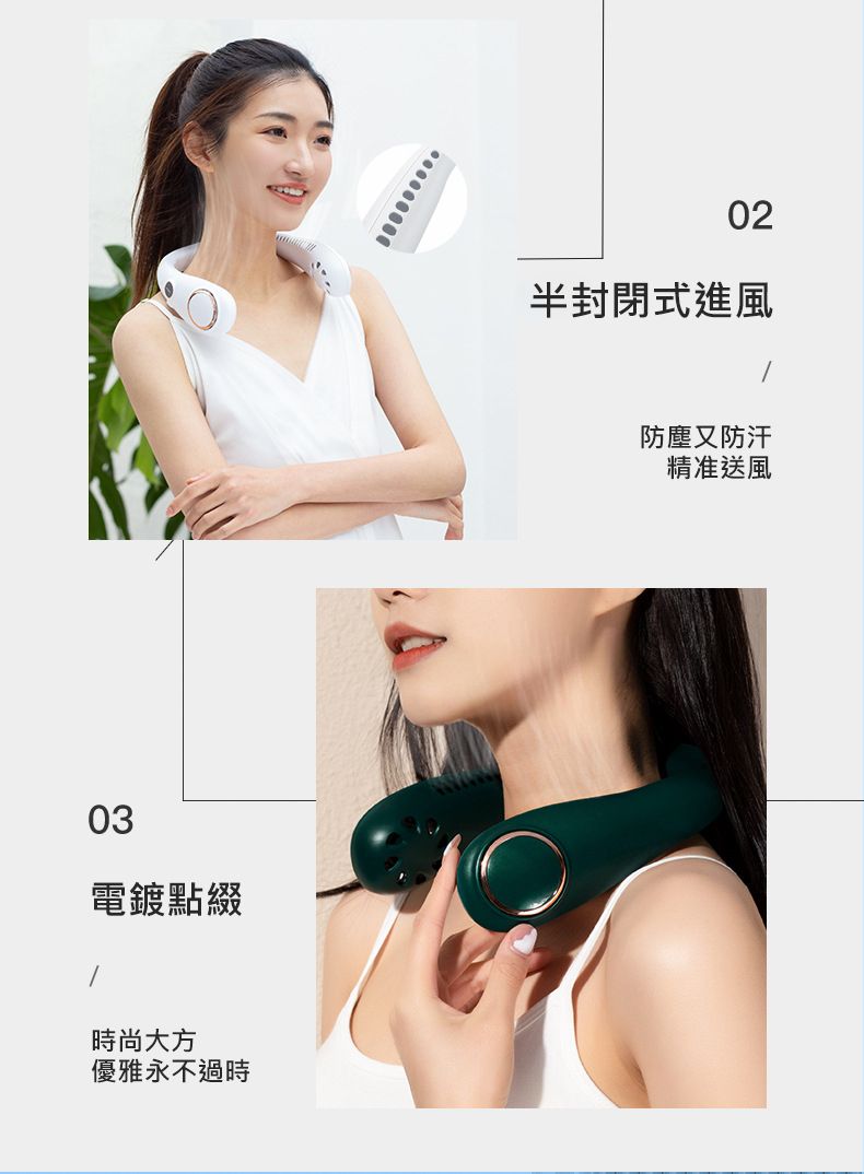 新款usb便攜數顯無葉掛脖風扇【冰川白】+【暗夜綠】各一組(優惠400)