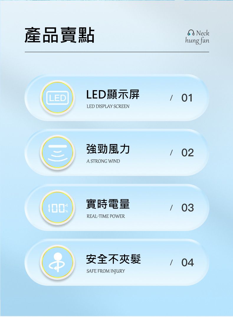 新款usb便攜數顯無葉掛脖風扇【冰川白】一組