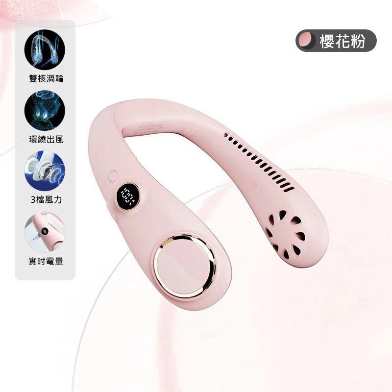 新款usb便攜數顯無葉掛脖風扇【櫻花粉】+【茉香綠】各一組(優惠400)