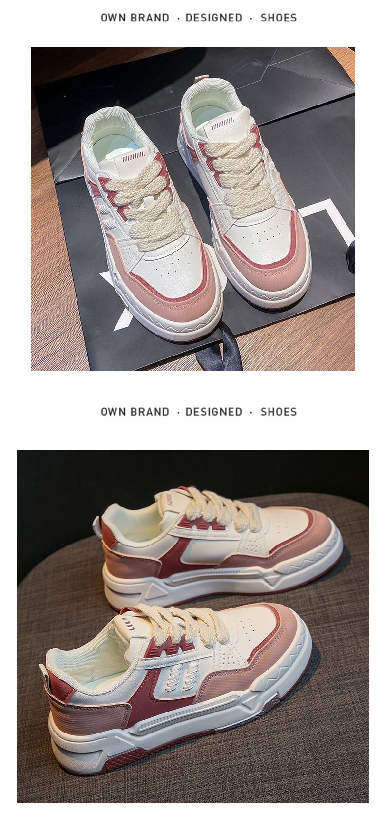 【各種場合隨心穿!】新款女士春季韓版休閒板鞋【米粉色】+【米色】各一雙(優惠400)