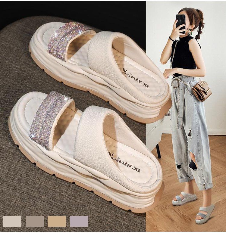時尚爆款閃耀水鑽涼拖【米白色】+【香芋色】各一雙