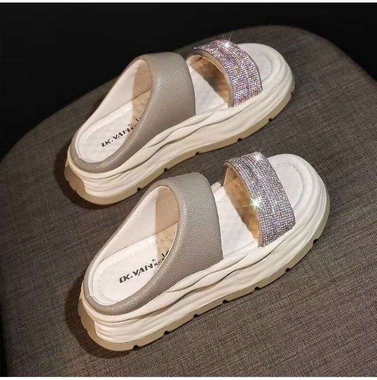 時尚爆款閃耀水鑽涼拖【米白色】一雙