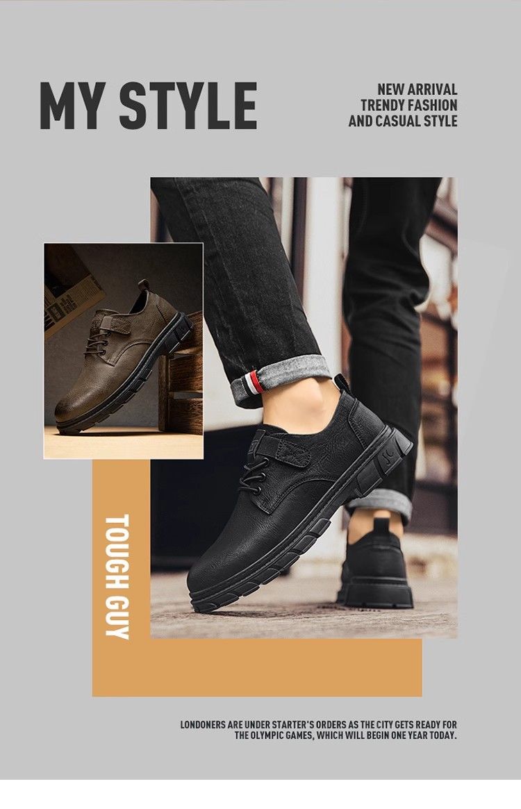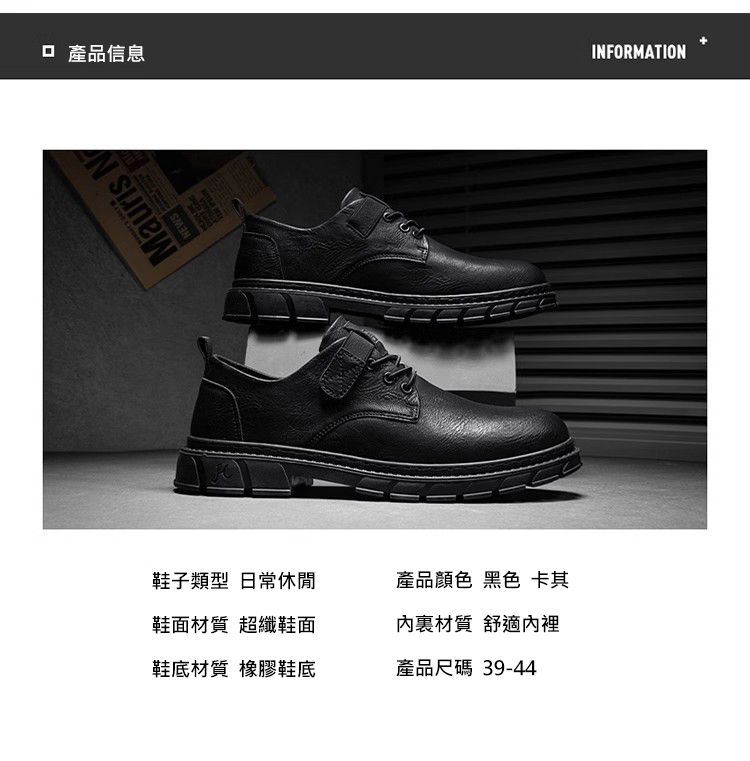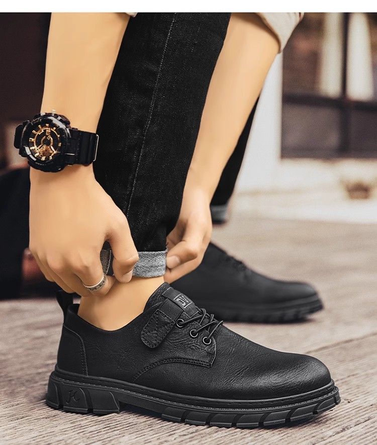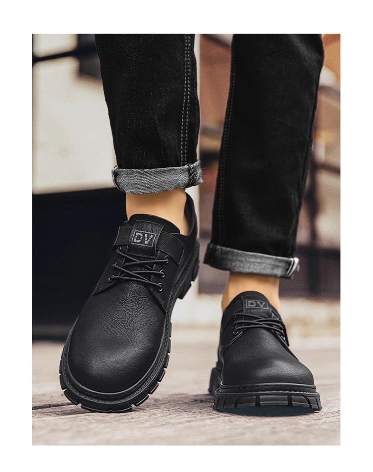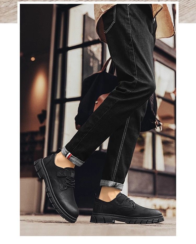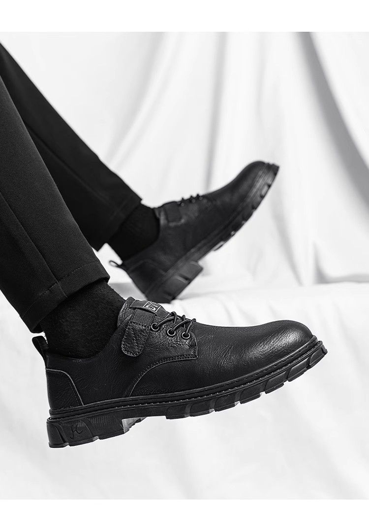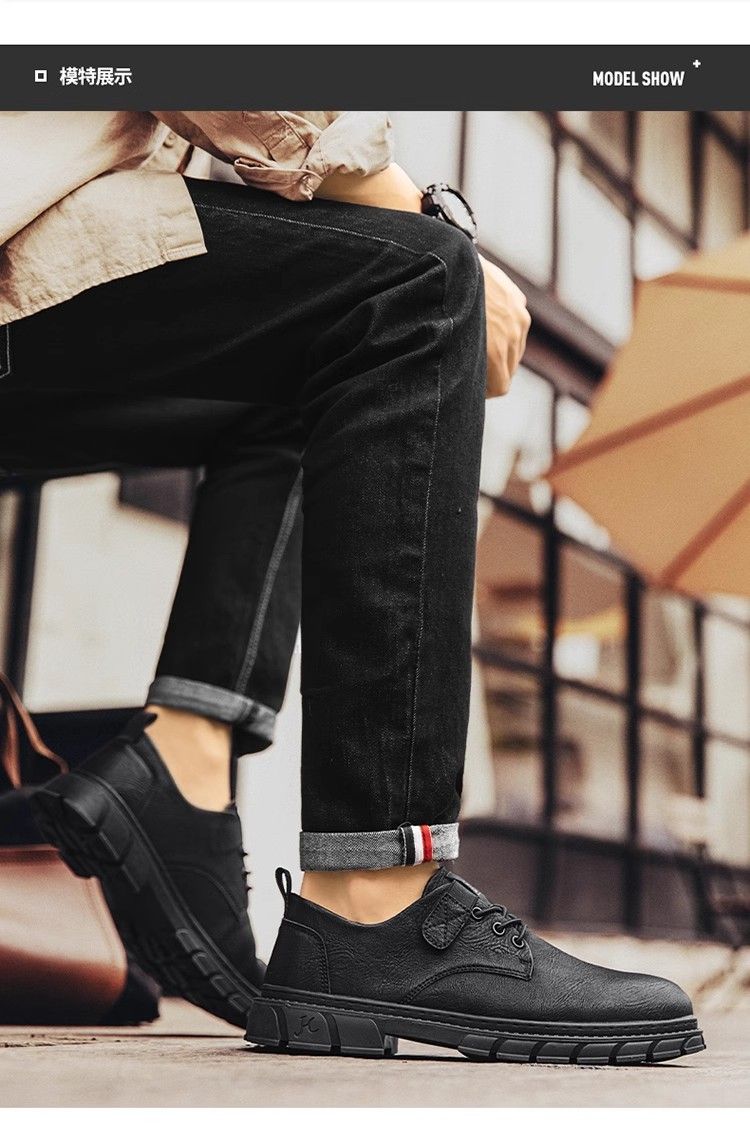 【熱賣新款】潮流商務休閒繫帶軟底皮鞋【黑色】一雙
