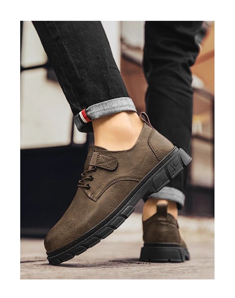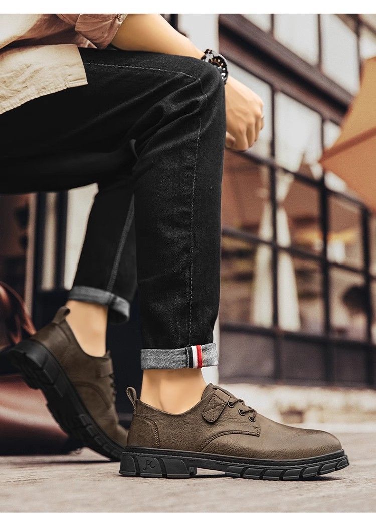 【熱賣新款】潮流商務休閒繫帶軟底皮鞋【棕色】一雙