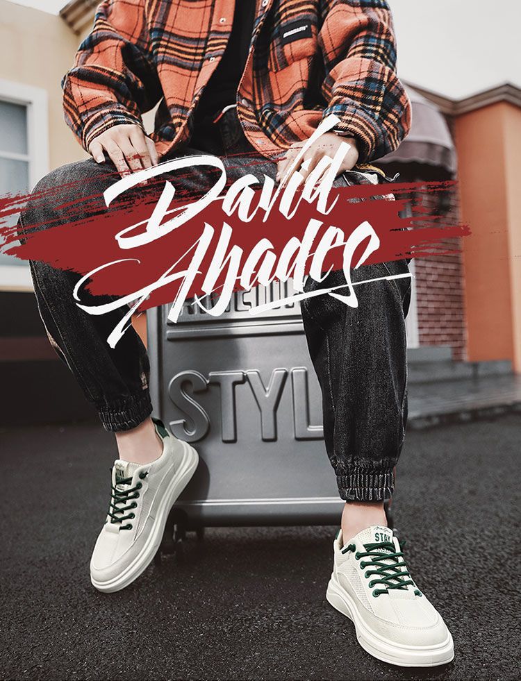 【透光透氣百搭】春季新款男士皮革網布運動鞋【米色】一雙