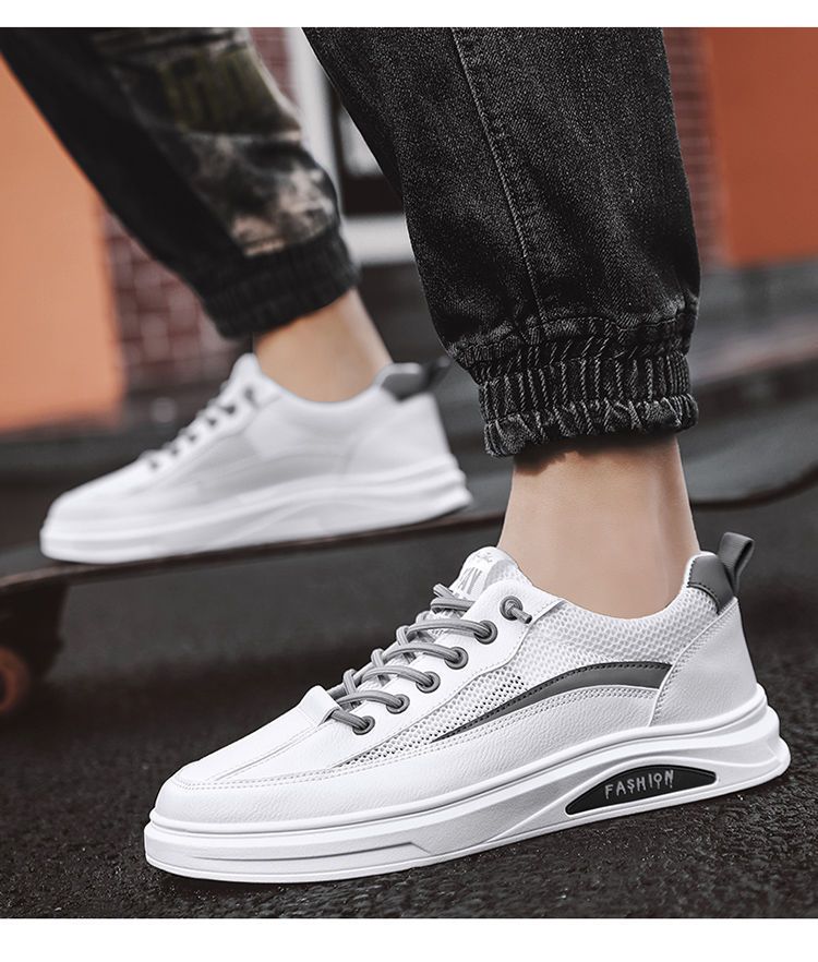 【透光透氣百搭】春季新款男士皮革網布運動鞋【白色】一雙