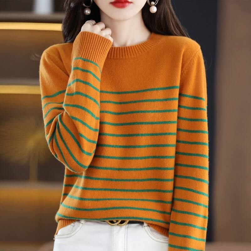 條紋秋冬女士針織衫【買一送二】駝色+咖色+桔黃色各一件(到手三件,每件333元!)
