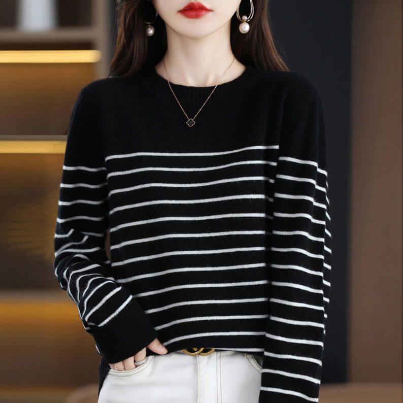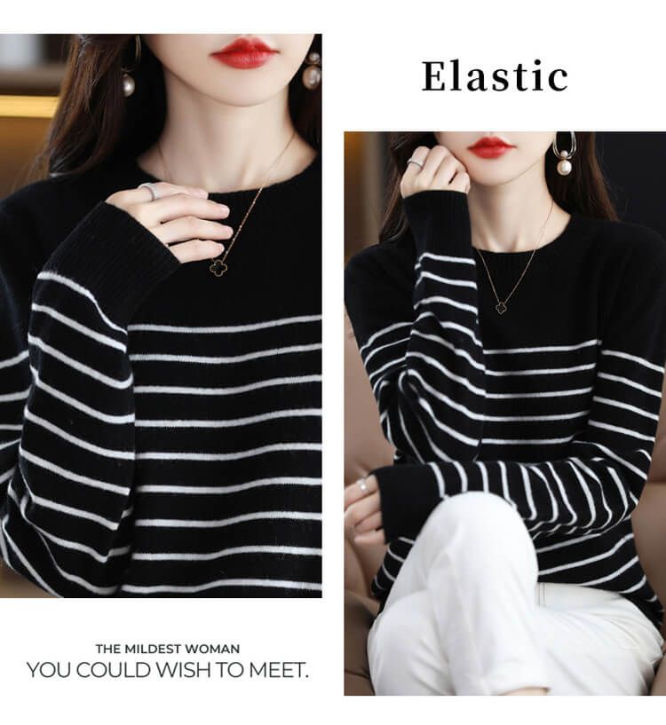 條紋秋冬女士針織衫【買一送二】白色+駝色+黑色各一件(到手三件,每件333元!)