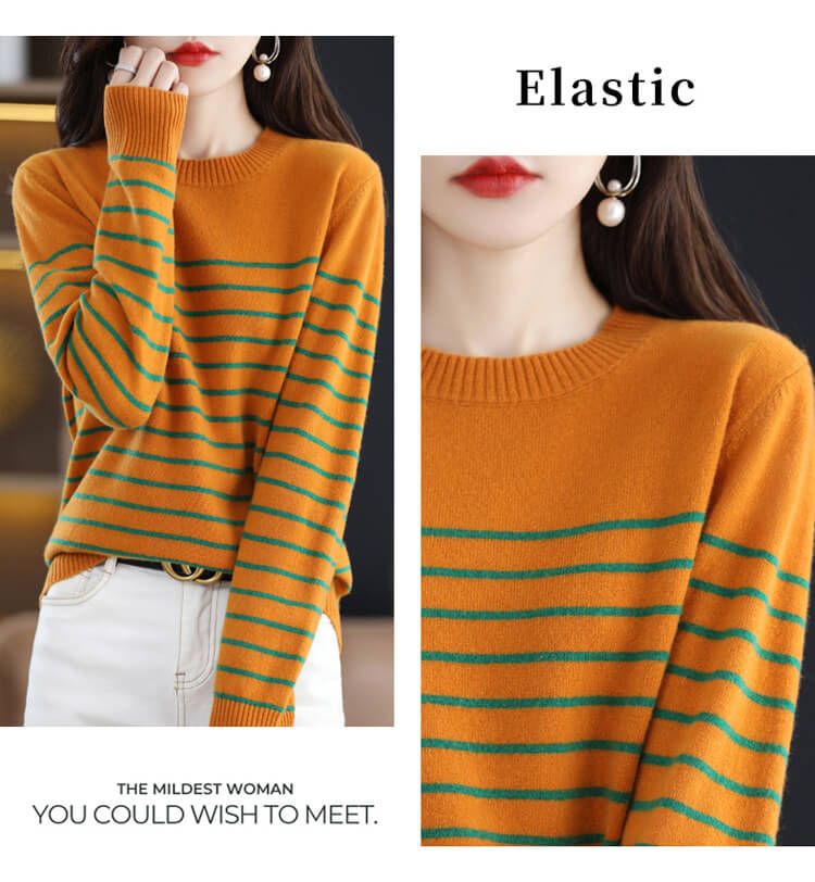 條紋秋冬女士針織衫【買一送二】駝色+桔黃色+黑色各一件(到手三件,每件333元!)