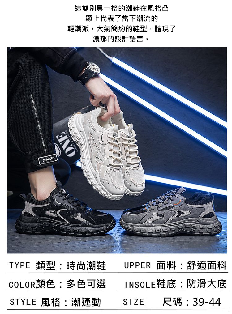 【大氣簡約!】男士防滑耐磨老爹鞋【灰色】+【米色】各一雙(優惠400)