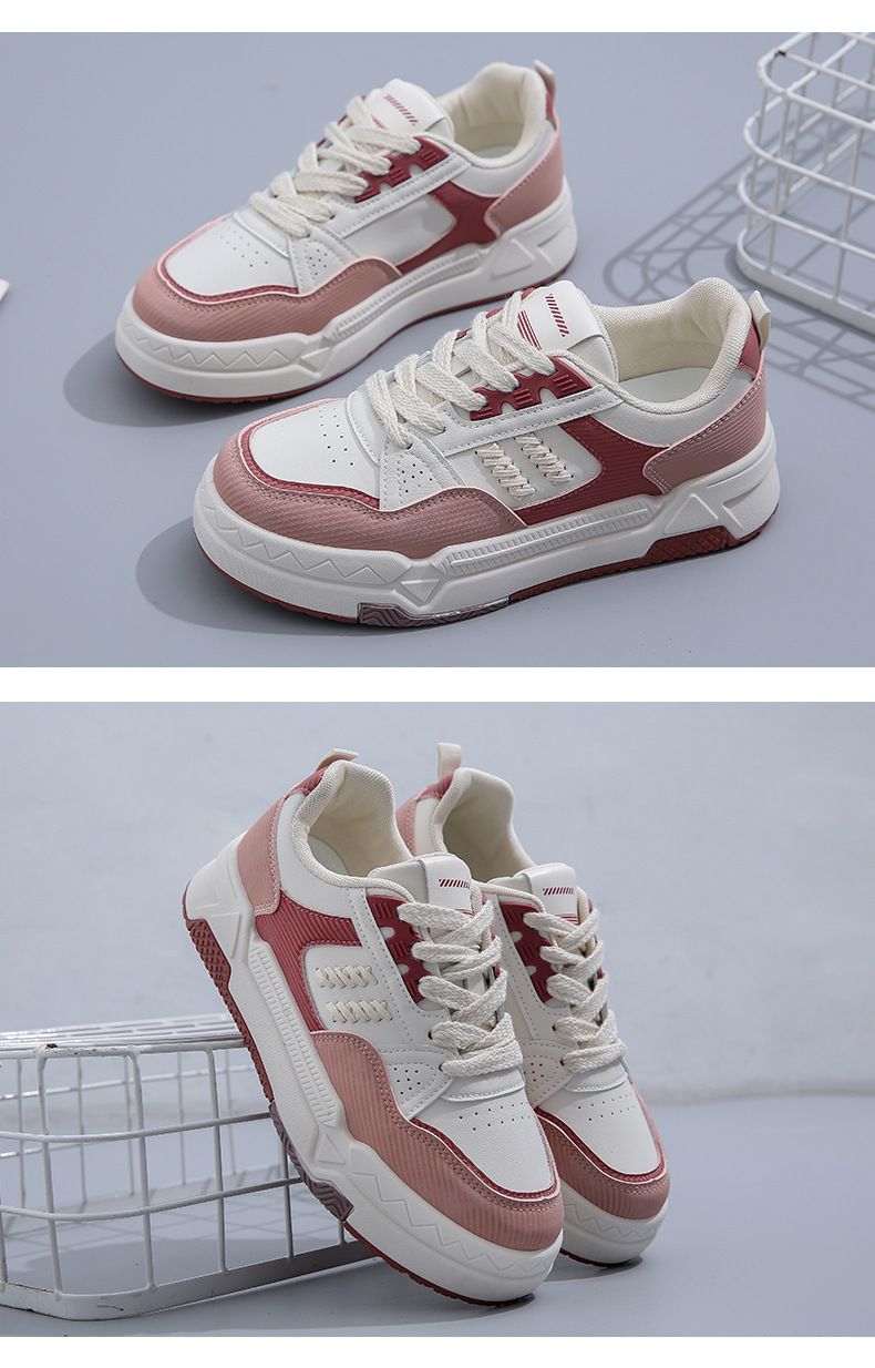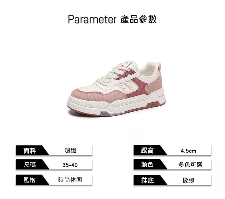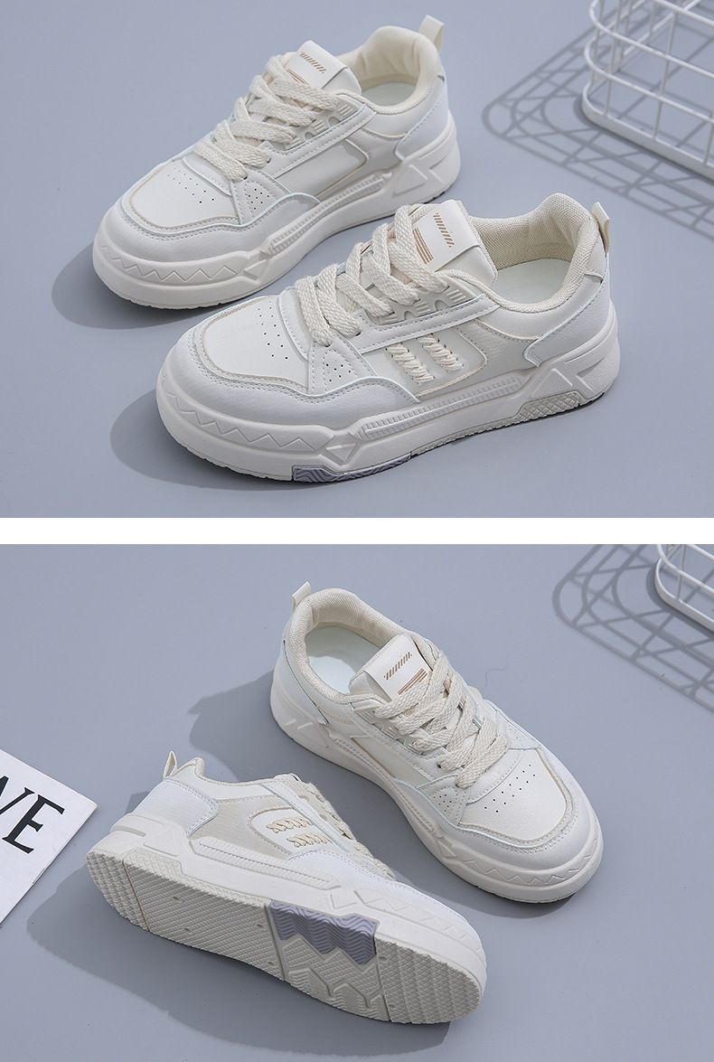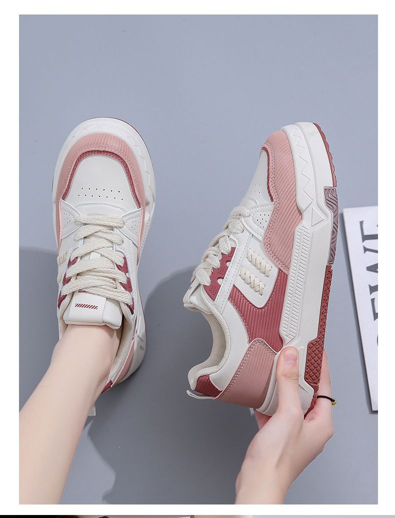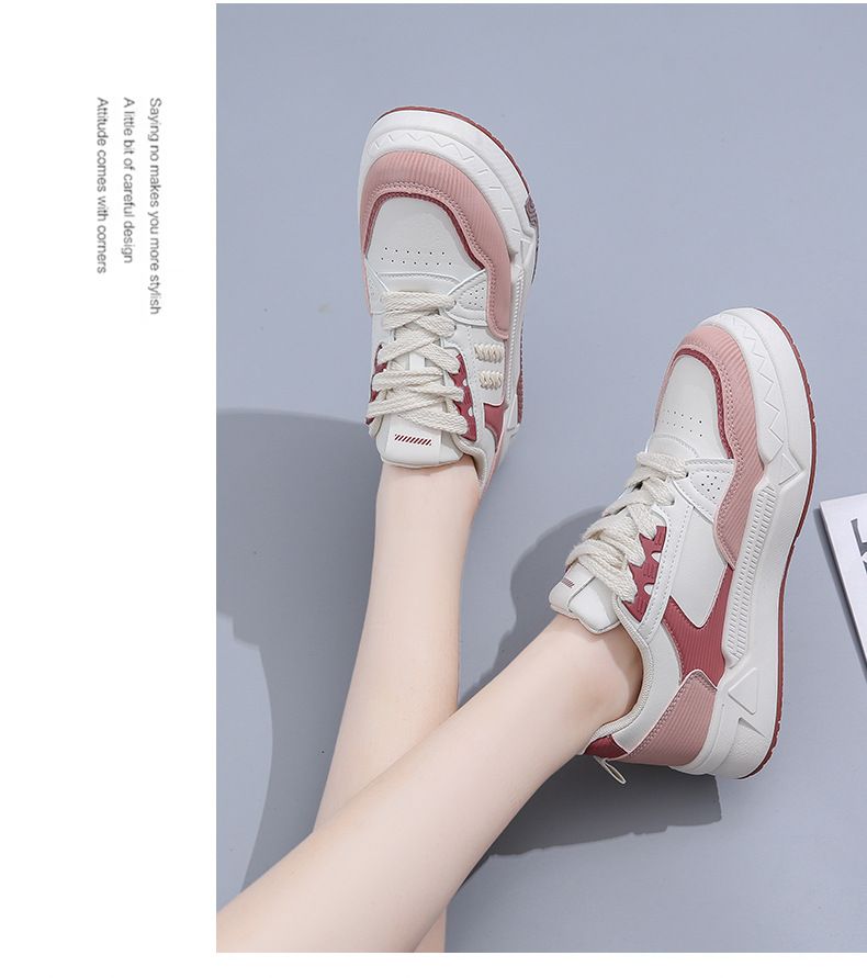 【0退貨!】女士韓版厚底休閒運動板鞋【米粉色】+【米色】各一雙(優惠400)