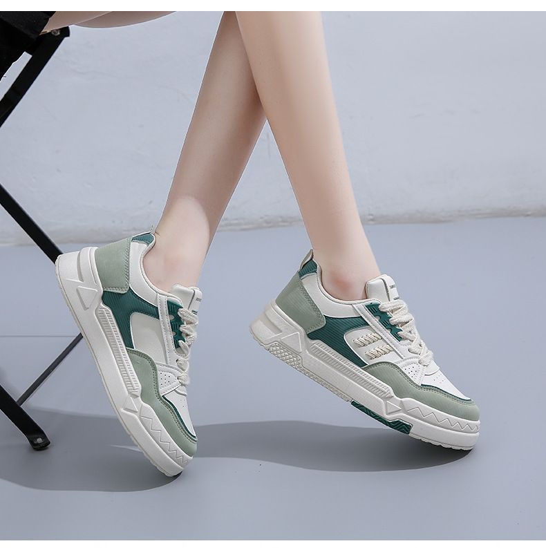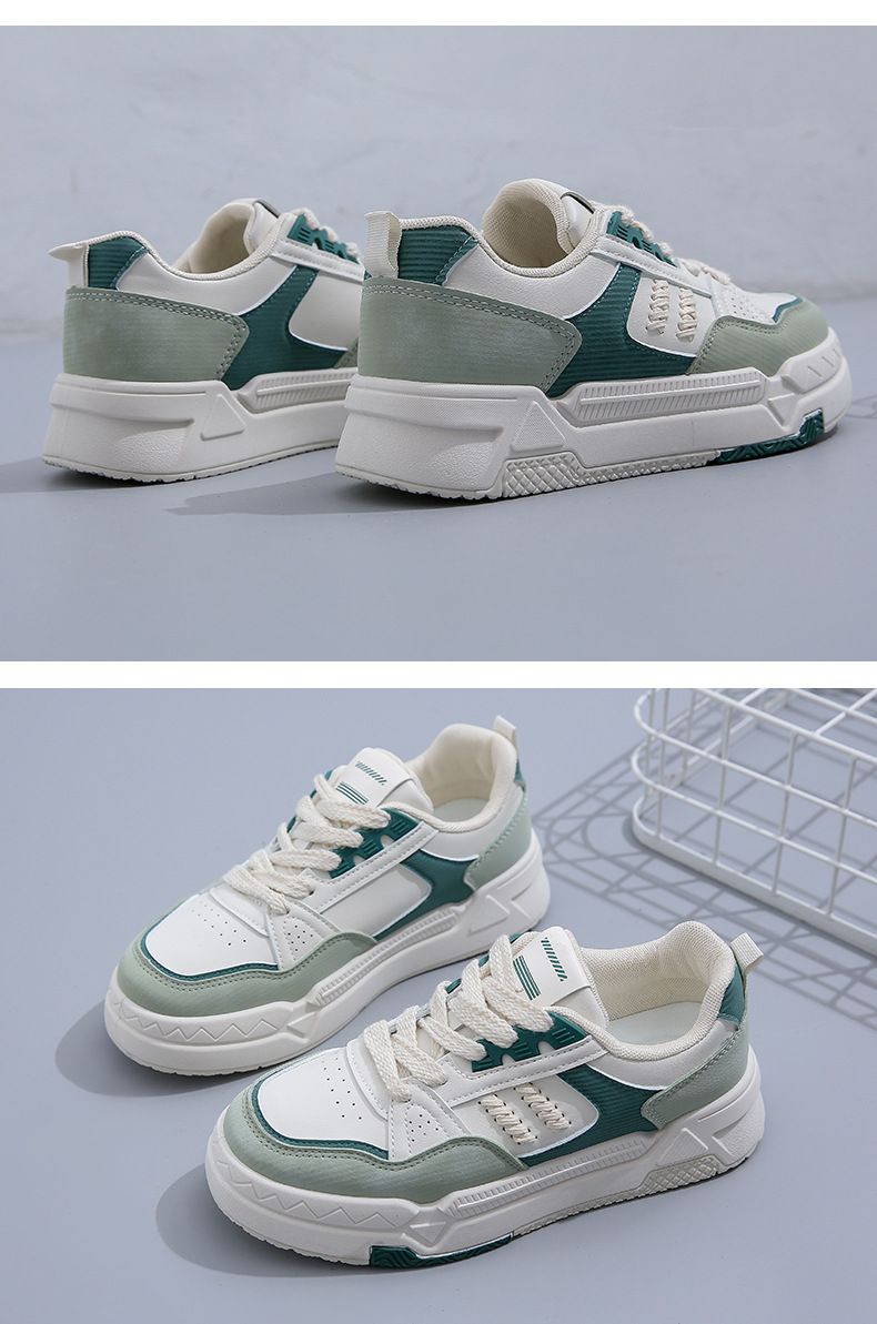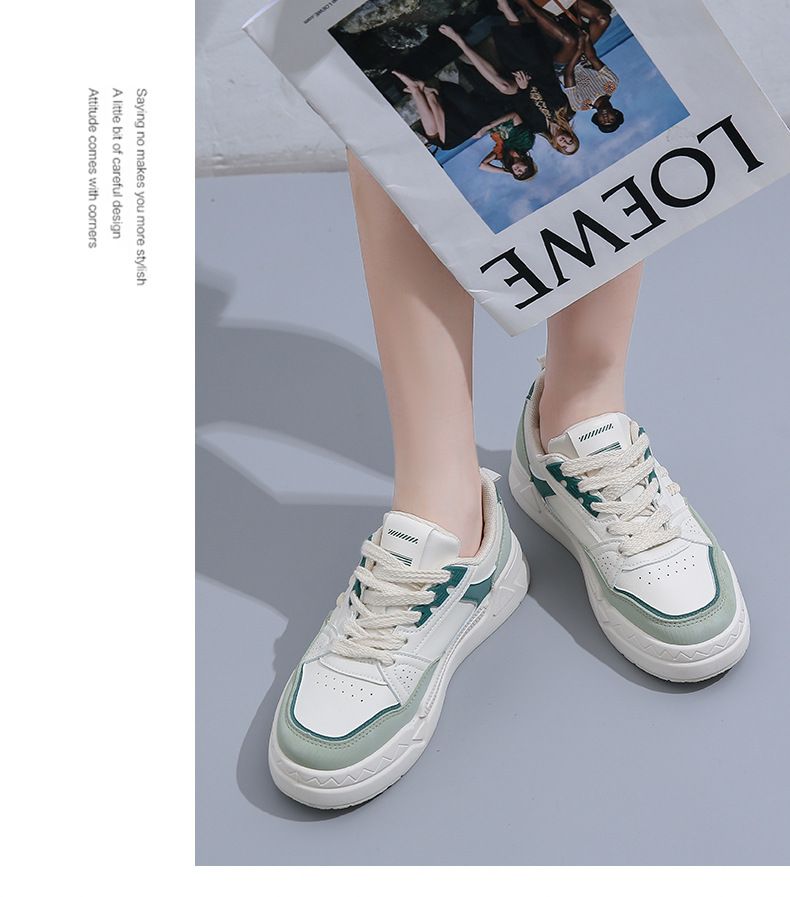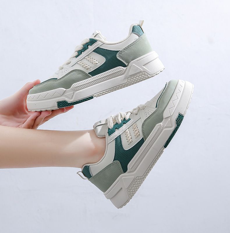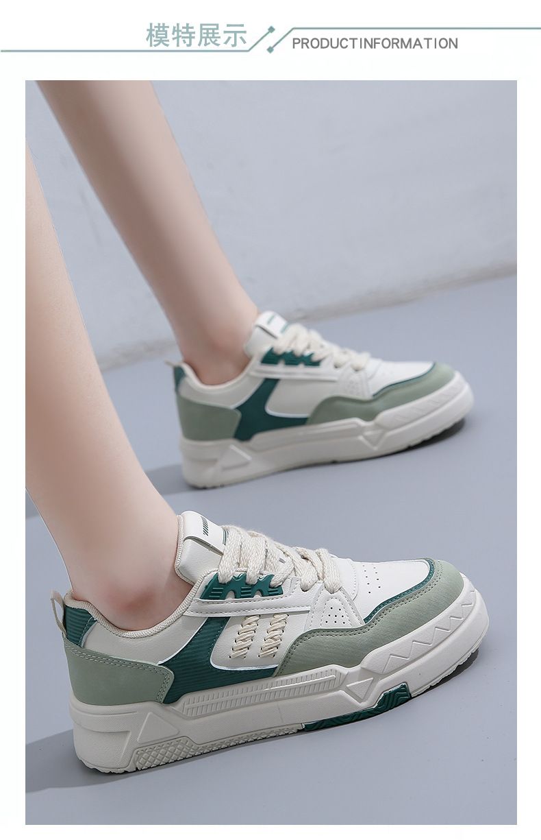 【0退貨!】女士韓版厚底休閒運動板鞋【米綠色】+【米色】各一雙(優惠400)