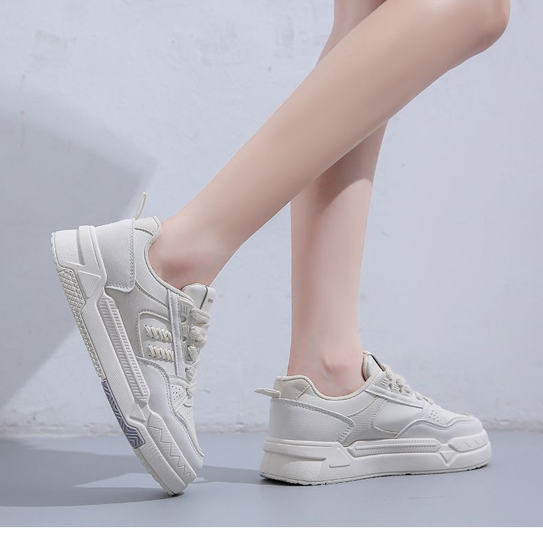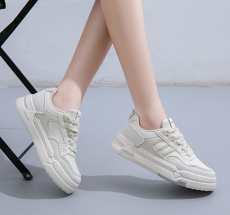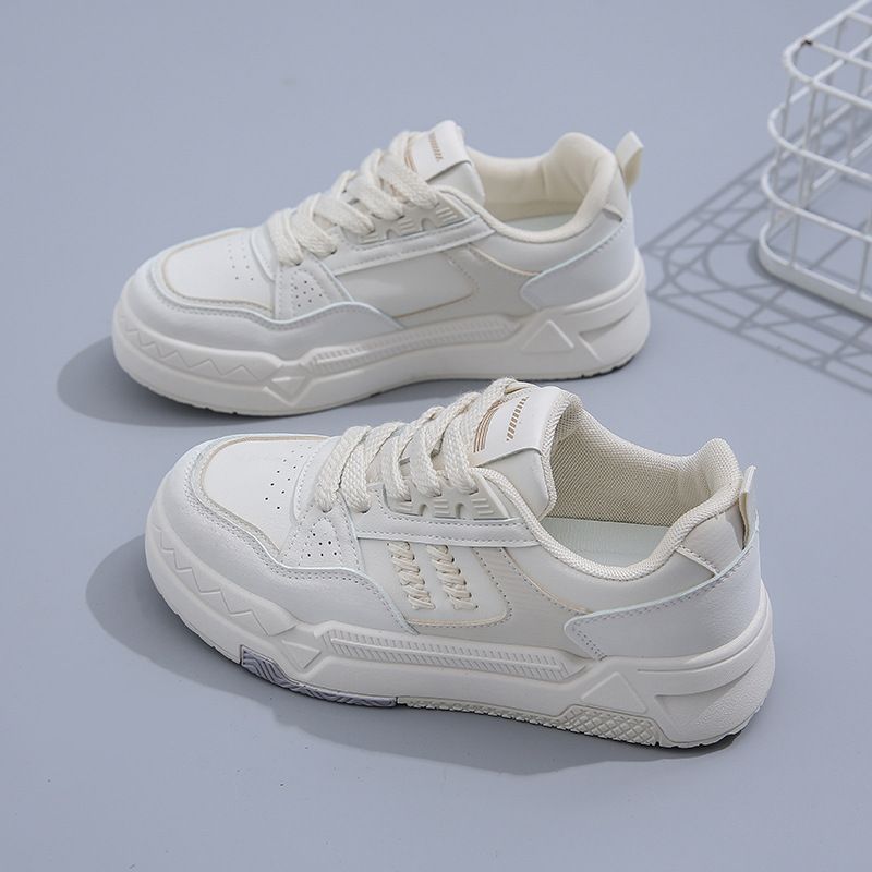 【0退貨!】女士韓版厚底休閒運動板鞋【米色】一雙