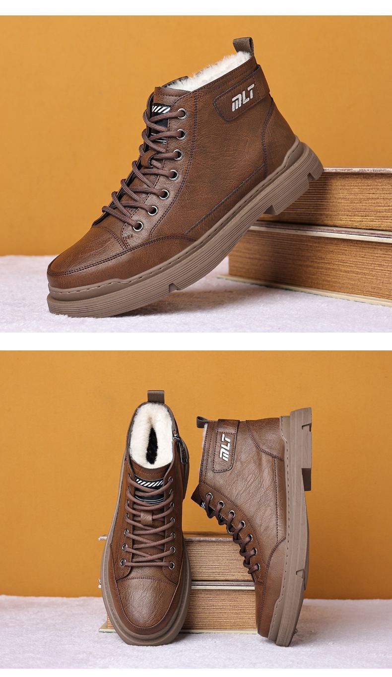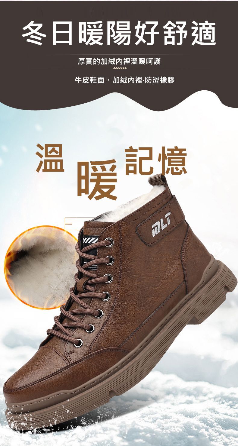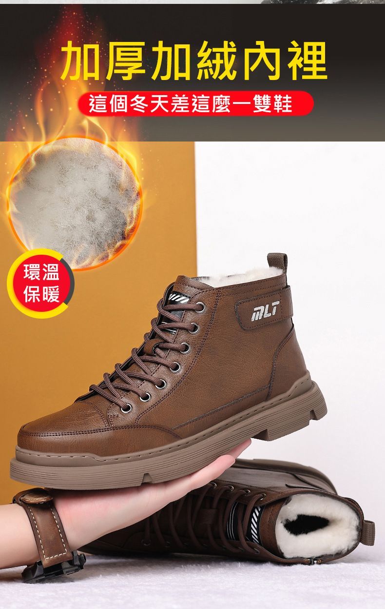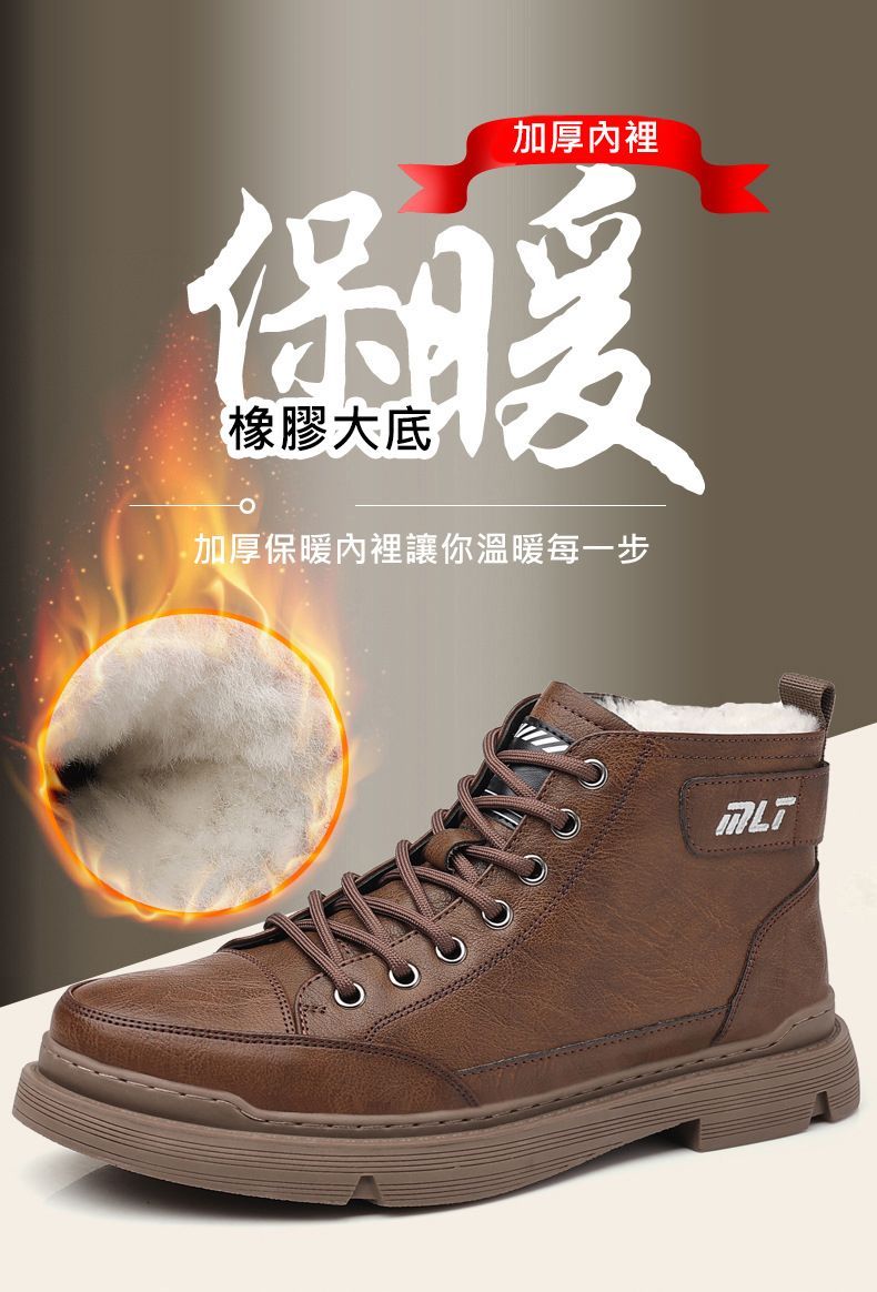 【溫暖每一步!】冬季男士柔軟舒適高幫純牛皮鞋【棕色加絨】一雙
