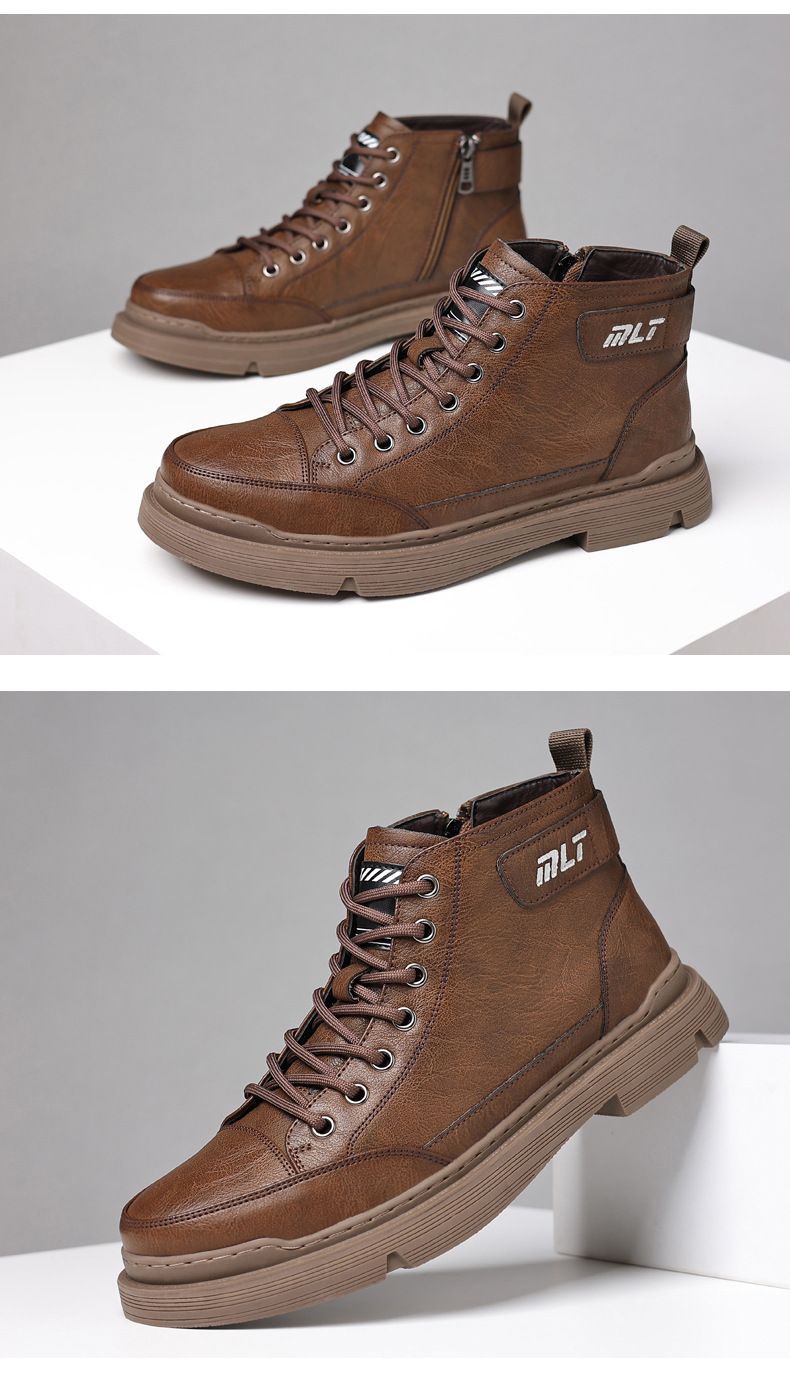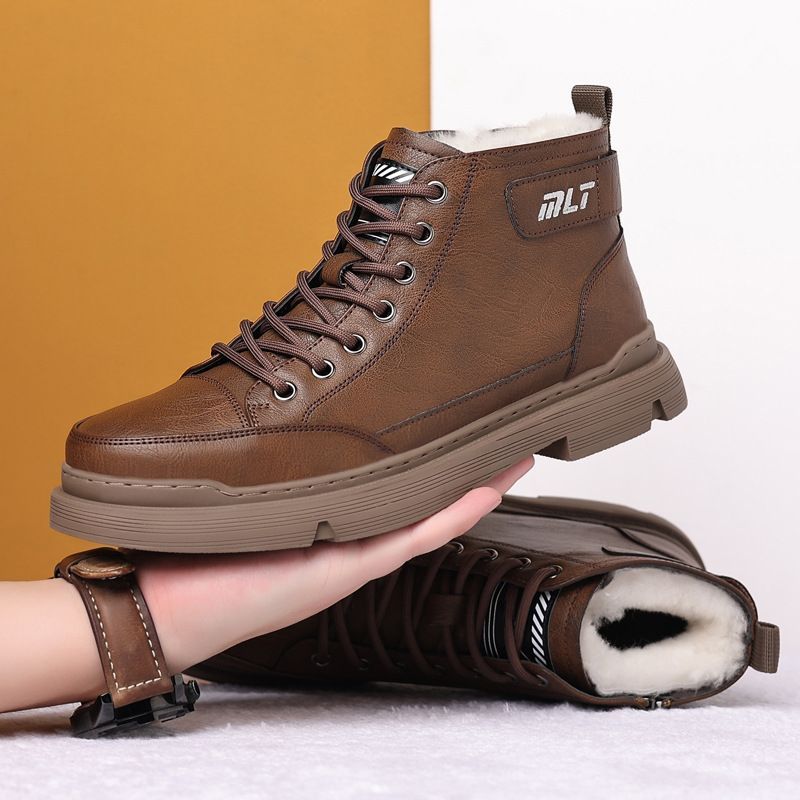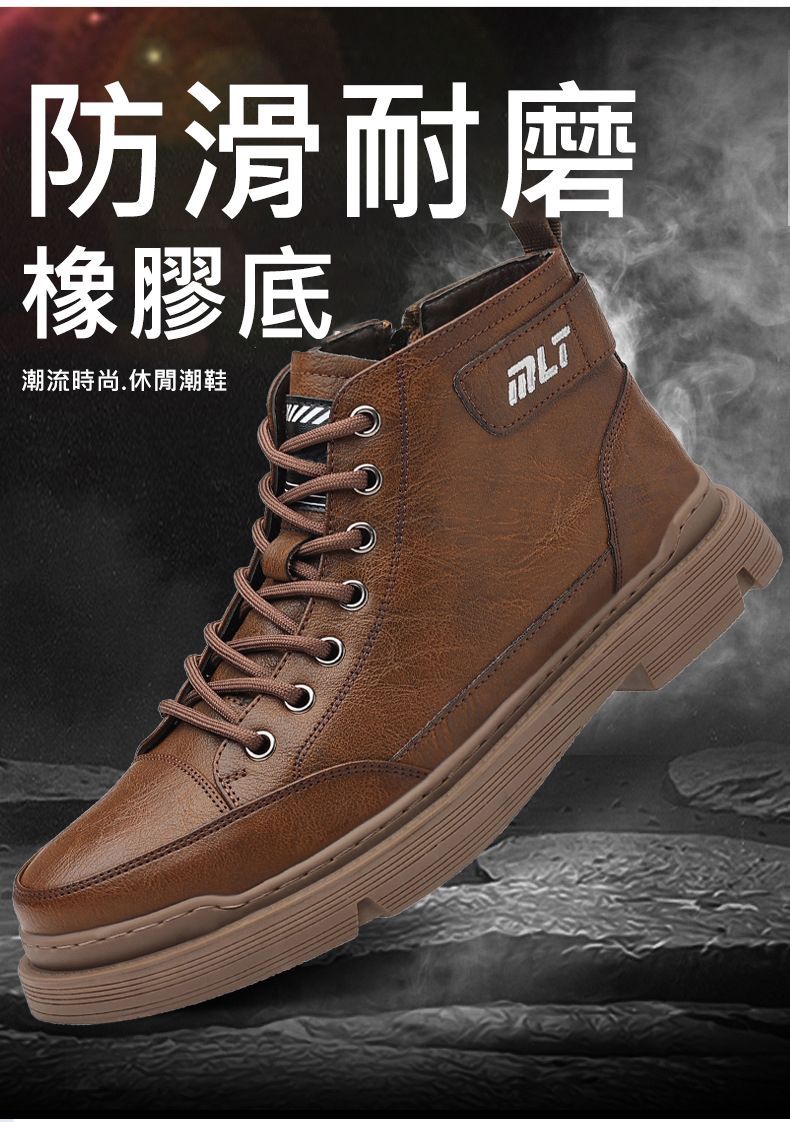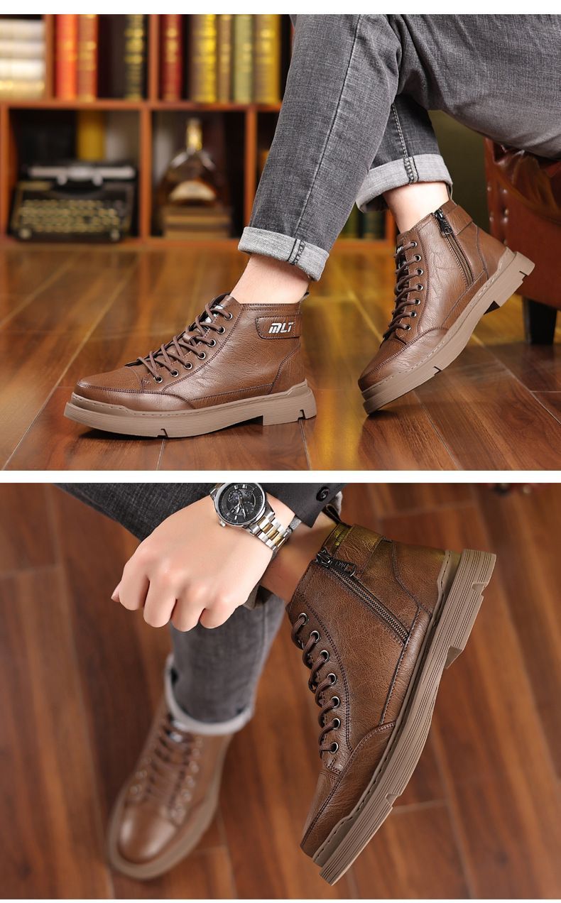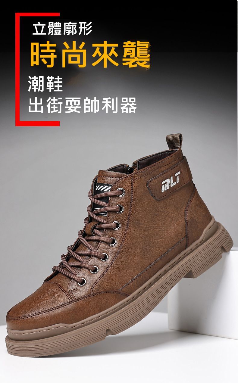 【溫暖每一步!】冬季男士柔軟舒適高幫純牛皮鞋【棕色加絨】一雙