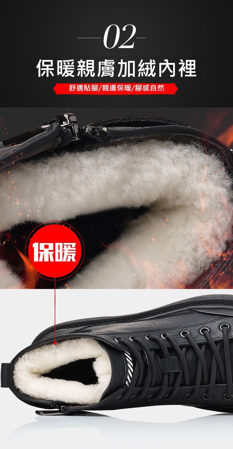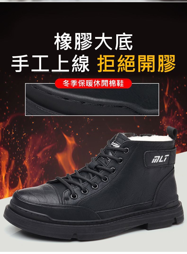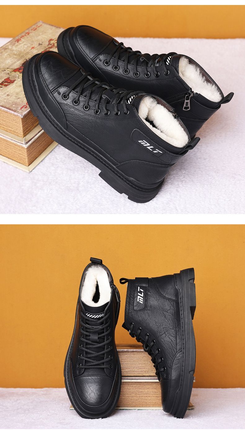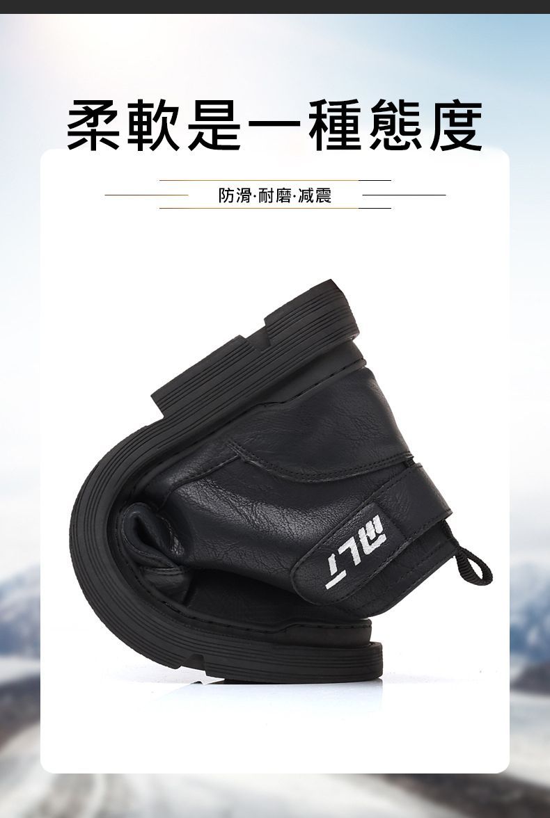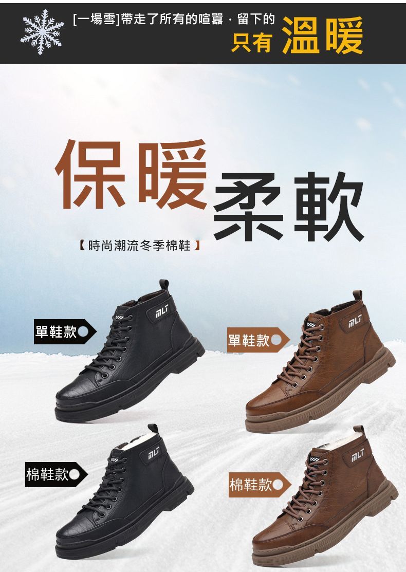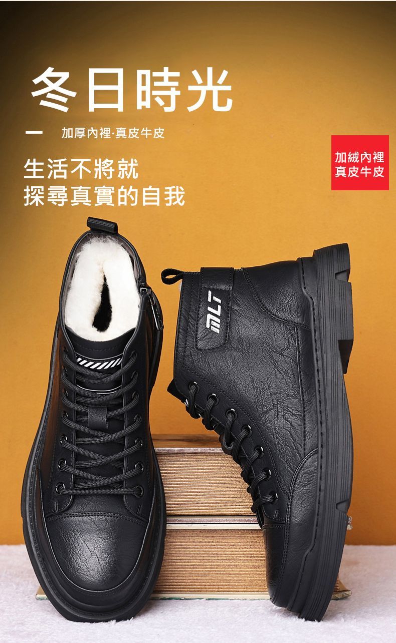 【溫暖每一步!】冬季男士柔軟舒適高幫純牛皮鞋【黑色加絨】一雙