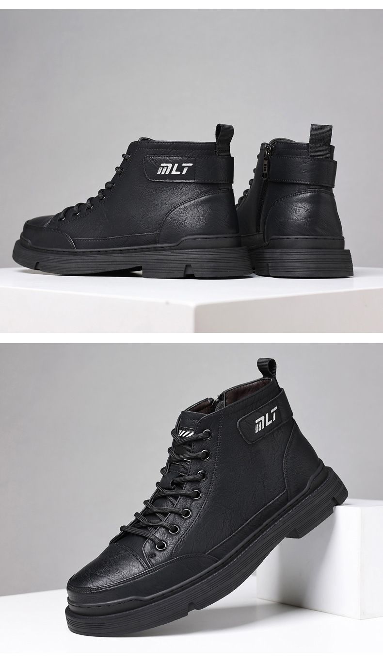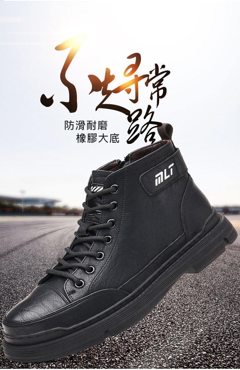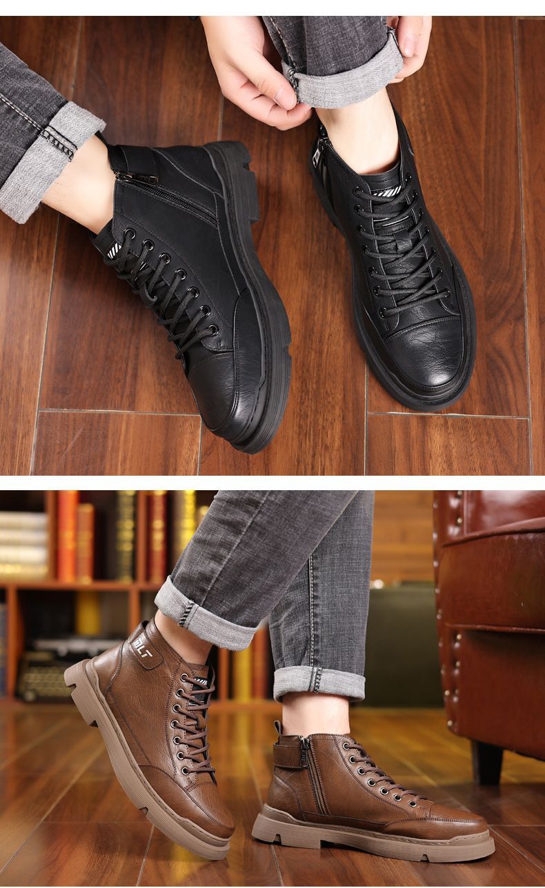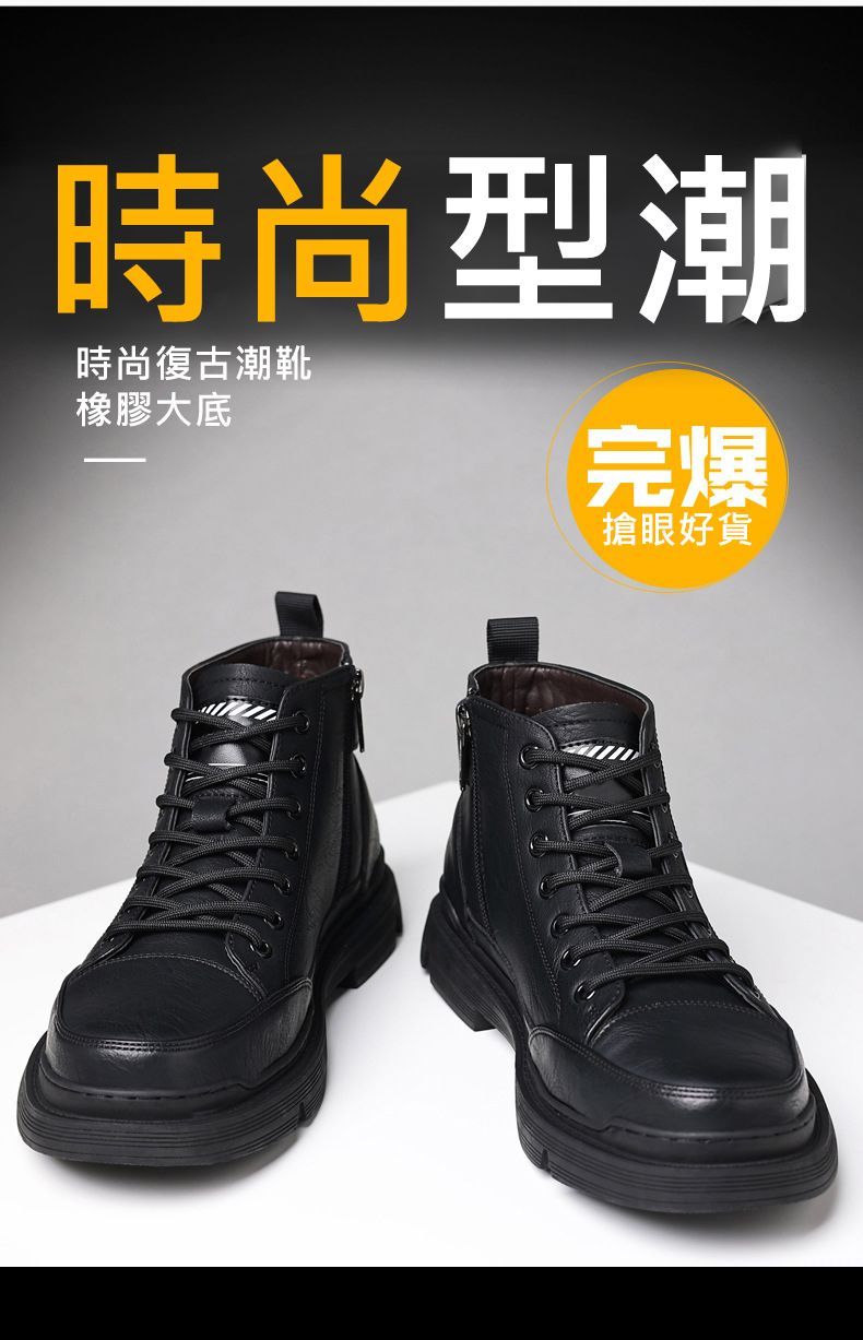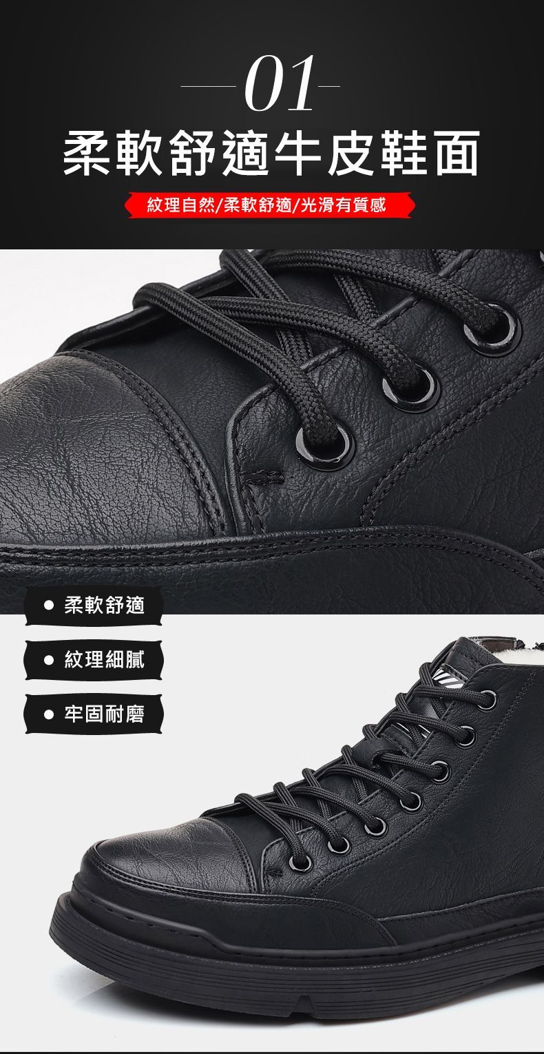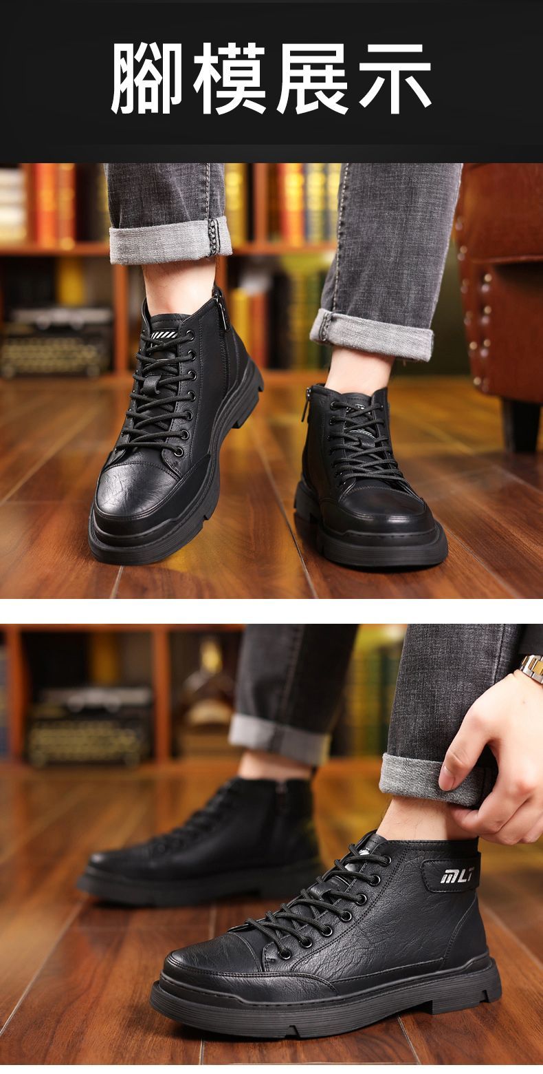 【溫暖每一步!】冬季男士柔軟舒適高幫純牛皮鞋【黑色加絨】一雙